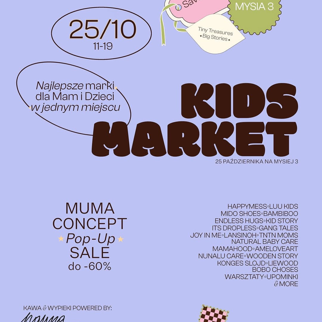 Podczas wydarzenia 25.10 (sobota) czeka na Was nasz wyjątkowy Pop-Up Sale, czyli wyprzedaż do -60% na wybrane produkty MUMA CONCEPT. To doskonały moment, by uzupełnić garderobę i akcesoria dla najmłodszych lub zrobić zapasy na prezenty przed świętami 🎁