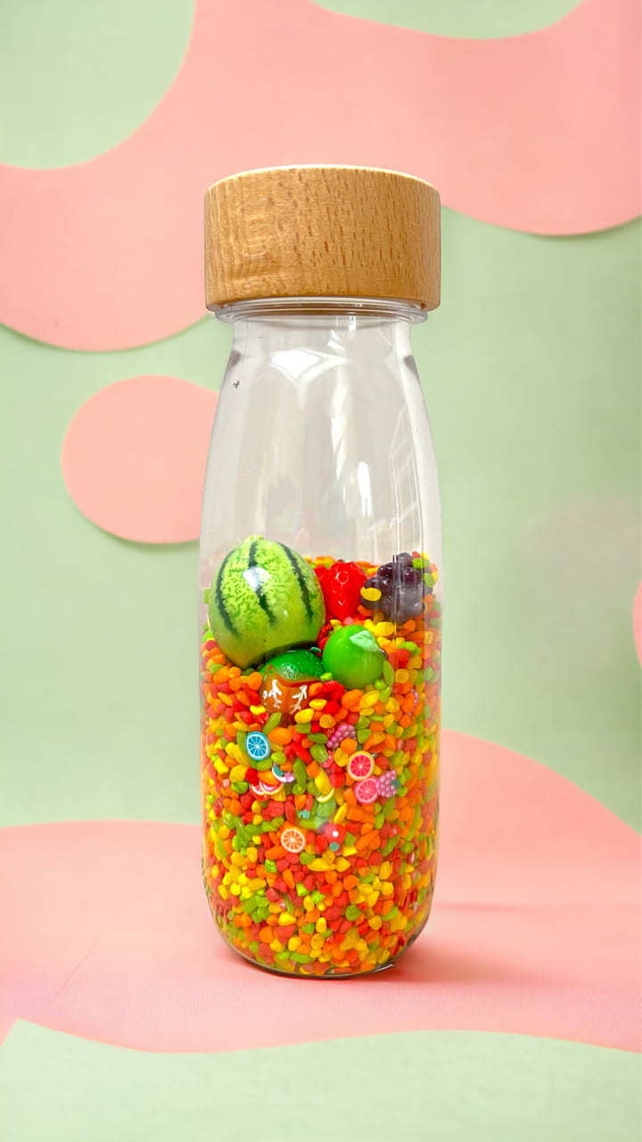 PETIT BOUM - hiszpańska marka produktów do stymulacji sensorycznej podczas zabawy. Twórczyni marki - Dolors - zauważyła jak często dzieci wybierają zwykłe butelki do zabawy, lubią nimi manipulować i obserwować ich zawartość. To było inspiracją do stworzenia marki Petit Boum z bezpiecznymi i intrygującymi zabawkami dla najmłodszych. Po wielu próbach i doświadczeniach, po wysłuchaniu opinii innych rodziców oraz po konsultacjach projektu z terapeutami i pediatrami, Dolors stworzyła świat pełen kolorów, przygód i magicznych efektów - zamknięty w butelce.