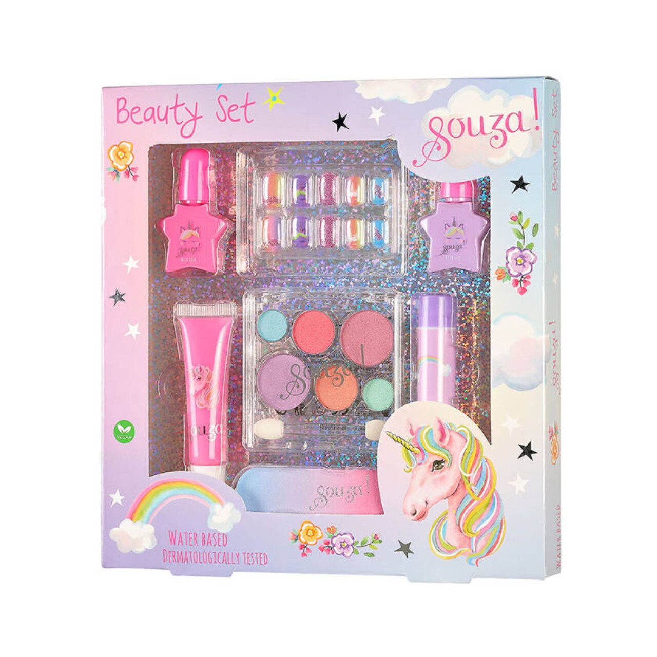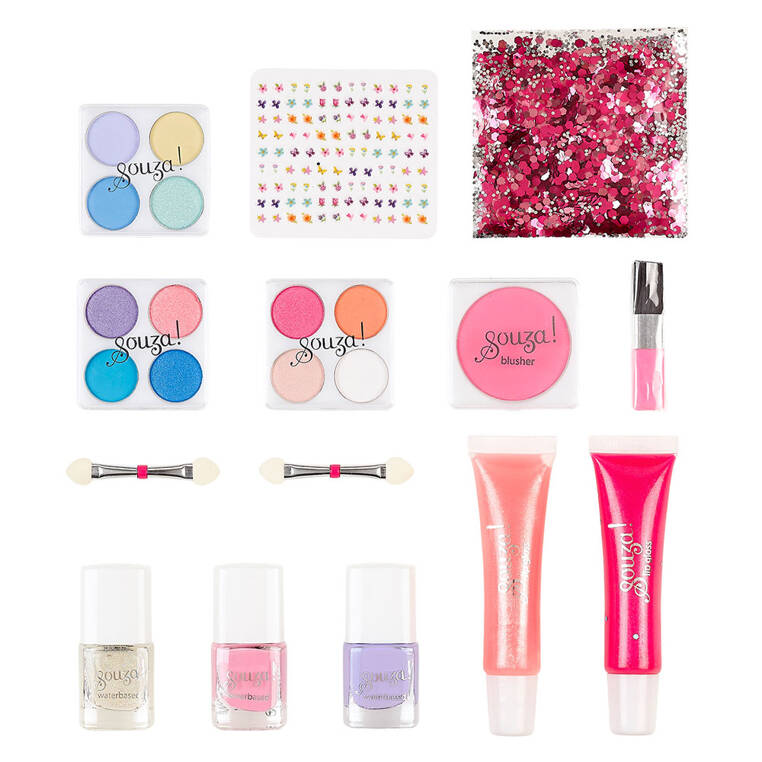 SOUZA! - holenderska marka, oferująca przebrania i szeroki wybór akcesoriów dla dzieci. Sukienki wizytowe, kostiumy, pantofelki, peleryny, skrzydła, tiary, biżuteria, maski, korony, kapelusze, tarcze, torebki, różdżki, spinki i kosmetyki tworzą wyjątkowe radosne kolekcje. W Souza! wszystko kręci się wokół fantazji i wyjątkowego designu, nieustannie inspirowanego nieskończonymi możliwościami, jakie daje łączenie materiałów i kolorów. Całości dopełniają w pełni bezpieczne, nieuczulające, wegańskie kosmetyki dla dzieci i bogata oferta ozdób do włosów, tak lubianych przez małe dziewczynki.