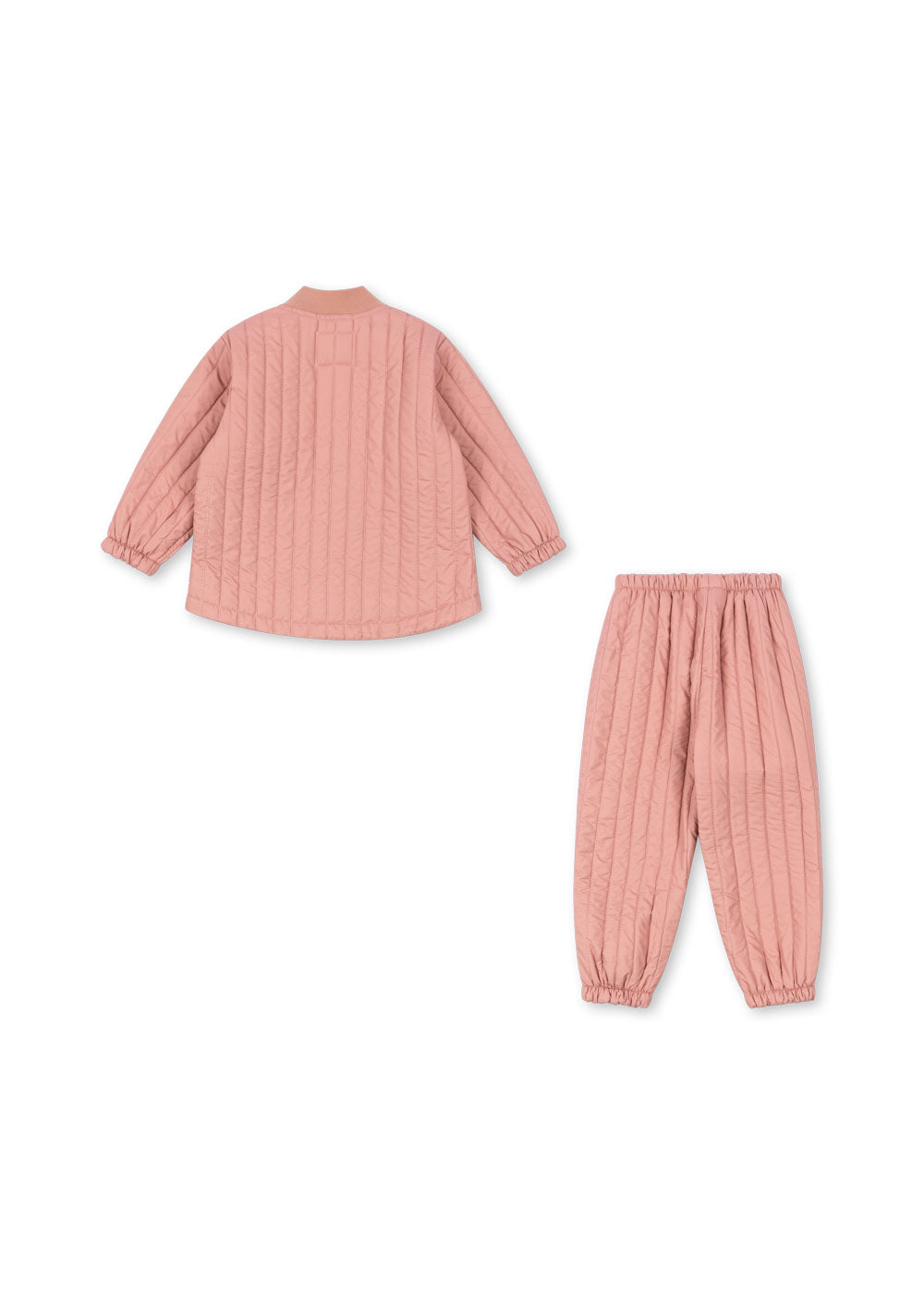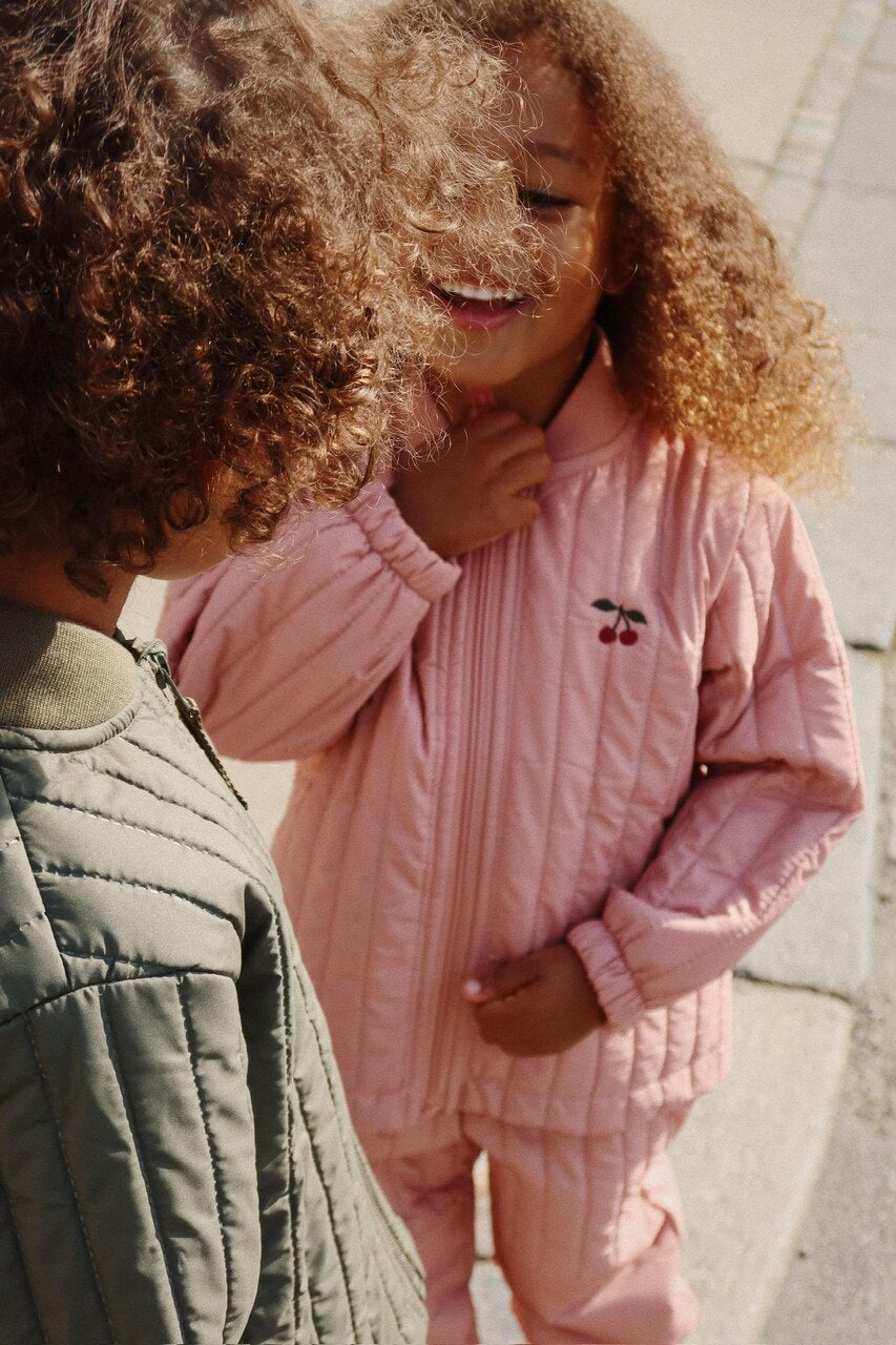 Oferujemy także dwuczęściowy komplet w kremowym lub cynamonowym kolorze. Składa się z bluzki na długi rękaw oraz krótkich spodenek. Elastyczne ściągacze przy rękawach, nogawkach i wokół szyi zapewniają znakomity komfort podczas snu, spaceru czy beztroskich zabaw.