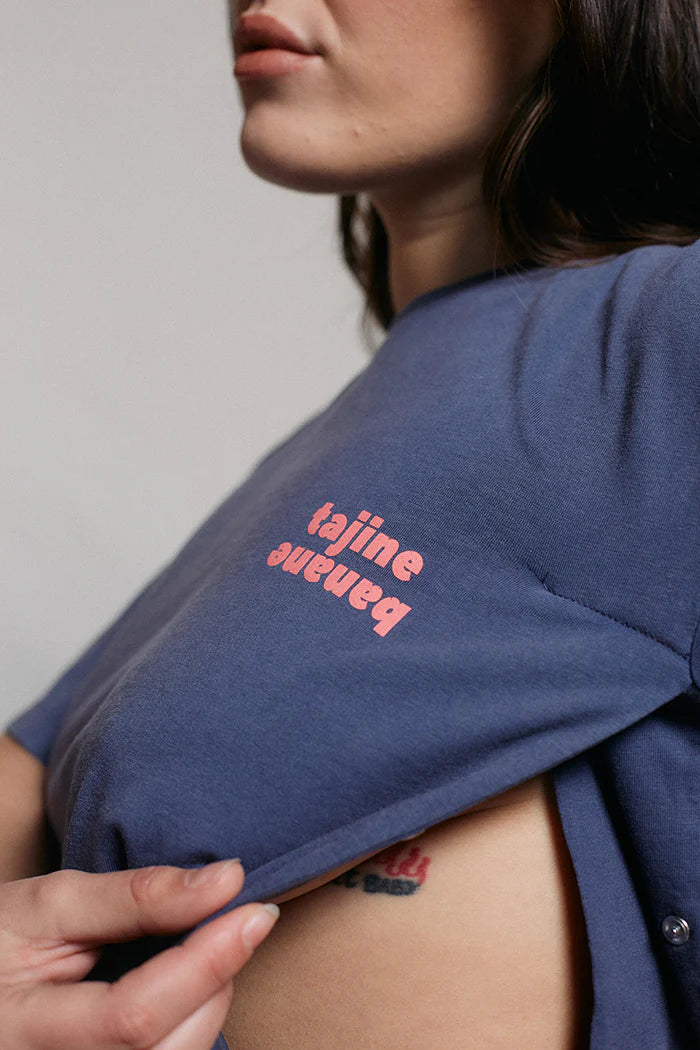 TAJINEBANANE - to francuska firma rodzinna stworzona przez Alison w 2018 roku, ta przygoda trwa do dzisiaj. Stworzona z myślą o kobietach, które chcą karmić swoje dziecko piersią, wszędzie i przez cały czas, bez narażania na szwank swojego ubrania i o zgrozo borykając się ze spojrzeniami przechodniów. Firma na co dzień współpracuje z artystami, którzy wspierają dział kreatywny w realizacji pomysłów. Za każdym projektem kryje się kilka godzin ręcznej pracy rysunkowej. Tajinebanane regularnie angażuje się w akcje prospołeczne.