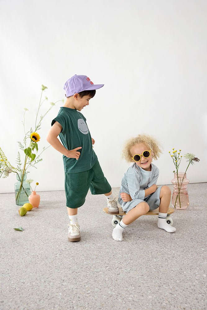 W ofercie Muma Concept nie mogło również zabraknąć dziecięcych zestawów składających się z krótkich spodenek oraz koszulki na ramiączka. Występują w białym lub ziemistym kolorze. Gwarantują doskonałą wygodę noszenia nawet podczas najbardziej szalonych, wakacyjnych zabaw. Równie dobrze sprawdzą się podczas spacerów i codziennych drzemek.