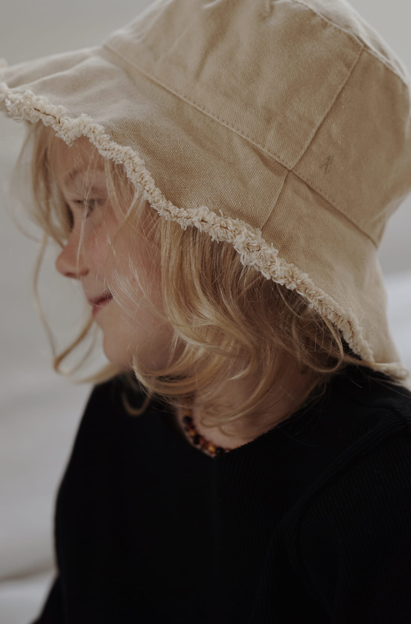Płócienna czapka z postrzępionymi brzegami. Prawdziwy letni must have. Dostępny w 6 różnych kolorach. Szeroki zakres rozmiarów - 3 rozmiary od noworodka do dorosłego - sprawia, że kapelusz ten jest produktem przeznaczonym zarówno dla dzieci i rodziców.