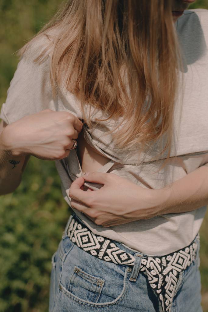 Nie musisz nic odpinać, zapinać, zasuwać, dociskać. Nie musisz dziwnie wykręcać ręki. Wystarczy lekko odchylić t-shirt dłonią i gotowe! Kończysz karmić? Nic prostszego – jedyne co musisz zrobić by zapiąć koszulkę, to wygładzić materiał ręką a magnesy znajdą swoje miejsce i zapną się same. Materiał posiada certyfikat Oeko-Tex 100 w klasie 1, co oznacza że jest bezpieczny nawet dla noworodków