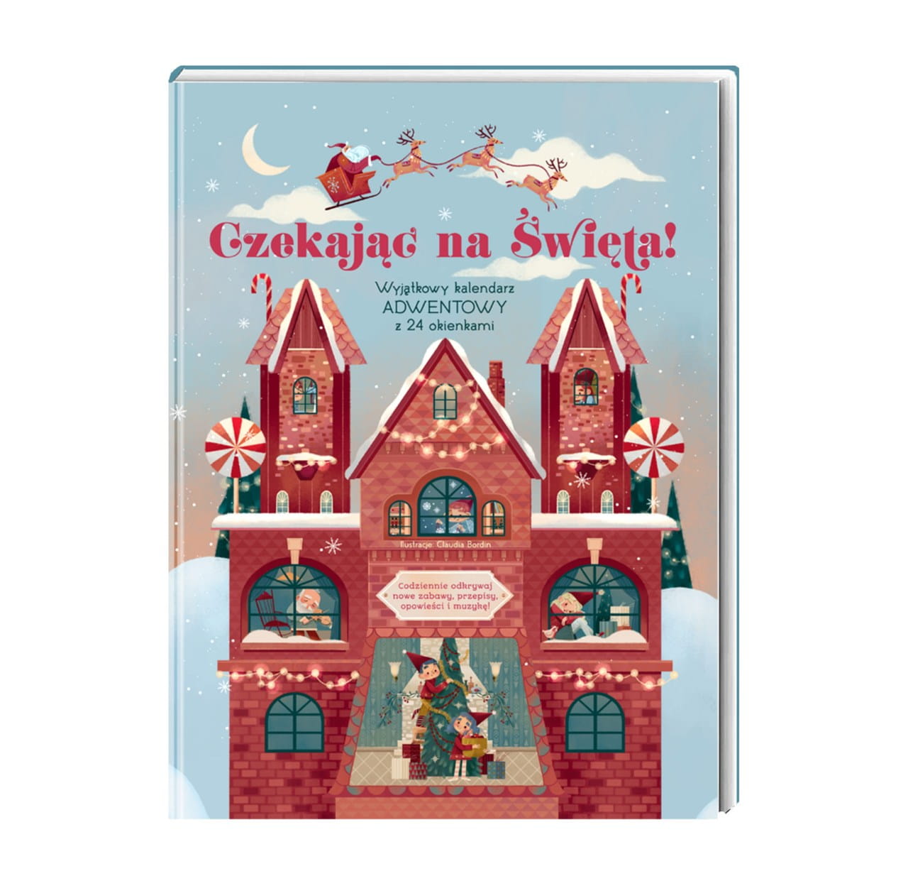 Ilustracje Claudii Bordin przywracają świąteczny nastrój w tej wielkoformatowej książce adwentowej. Od 1 do 24 grudnia każdego dnia dzieci znajdą okienko, aby odkryć piosenki, wiersze, wykwintne przepisy i pomysły na małe chwile świętowania. A to nie wszystko: playlista Spotify zapewni idealną ścieżkę dźwiękową do wspólnego oczekiwania na najbardziej magiczną noc w roku.