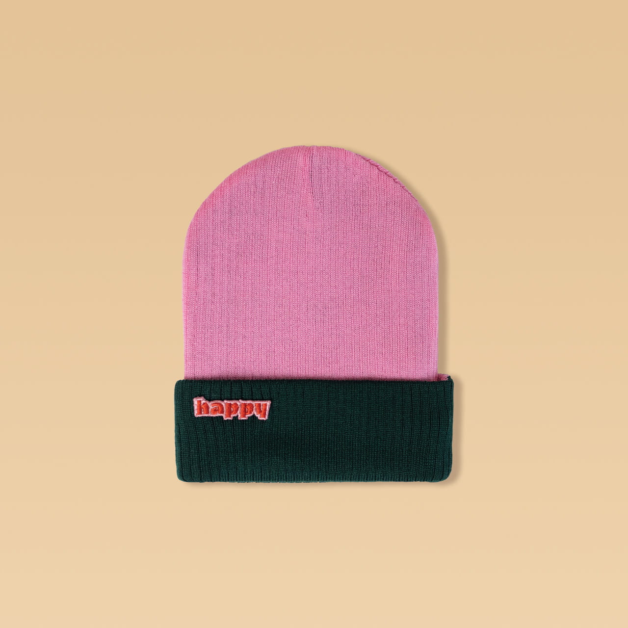 DWUSTRONNA CZAPKA BEANIE MERINO FOREST BERRY HAPPYMESS