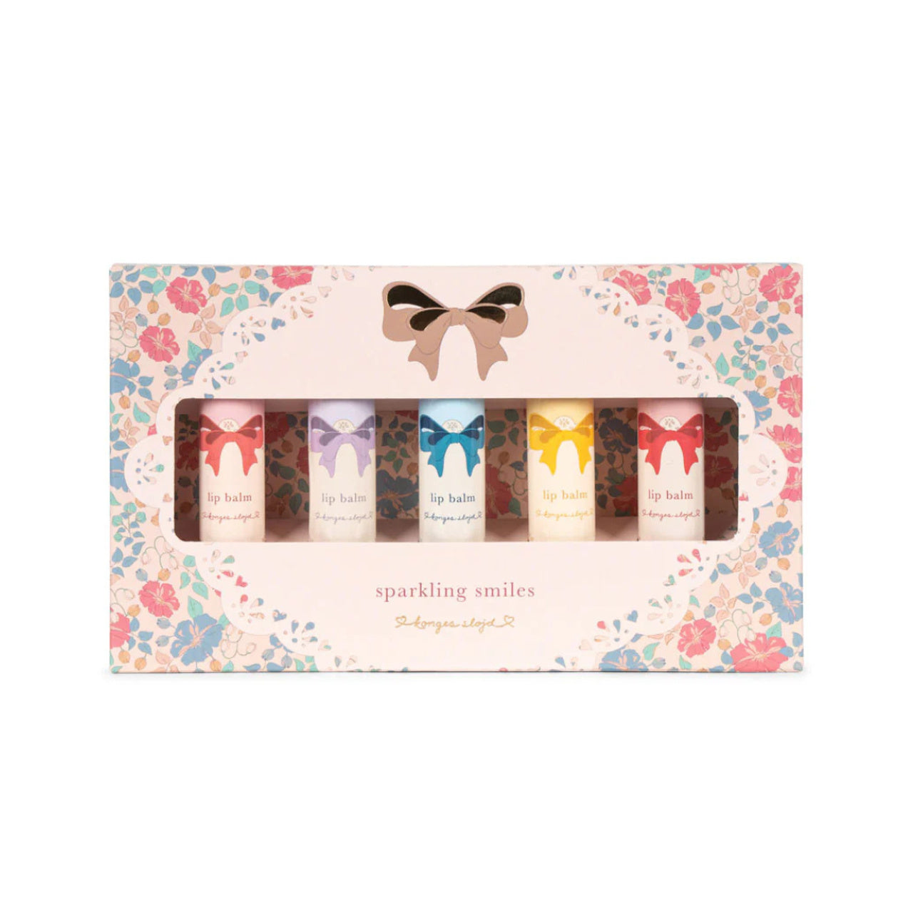 Zawiera: 5 brokatowych balsamów do ust (3,5g każdy).