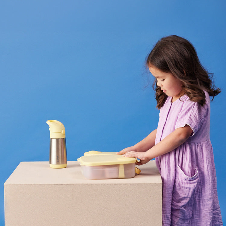 Innowacyjna termobutelka ze słomką marki b.box. Dzięki podwójnym ściankom ze stali nierdzewnej utrzymuje temperaturę zimnych napojów do 8 h, ciepłych do 6 h. Dzięki temu Twoje dziecko może pić w każdą pogodę. W komplecie uchwyt do przenoszenia butelki. Specjalnie zaprojektowana góra pozwala dzieciom samodzielnie otwierać butelkę. Nie zawiera BPA, ftalanów i PVC.