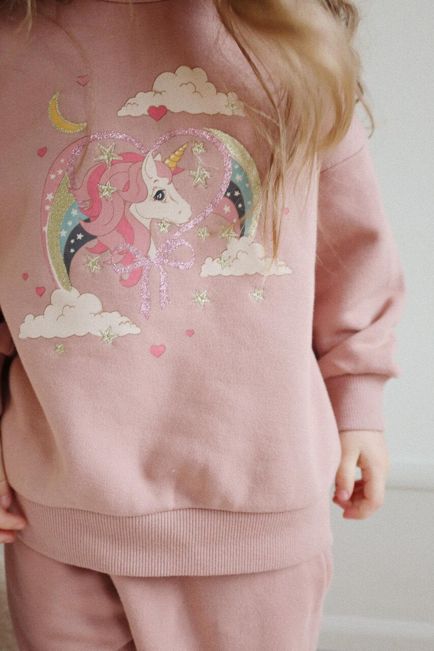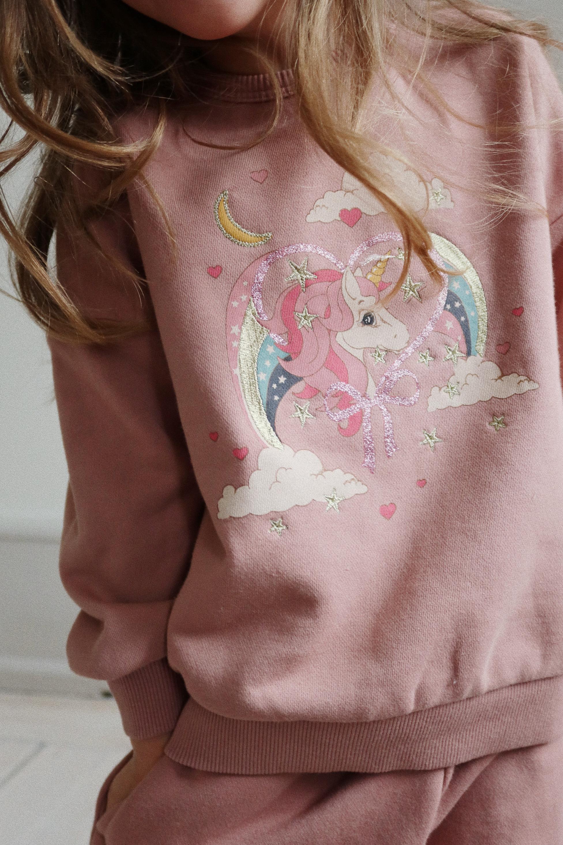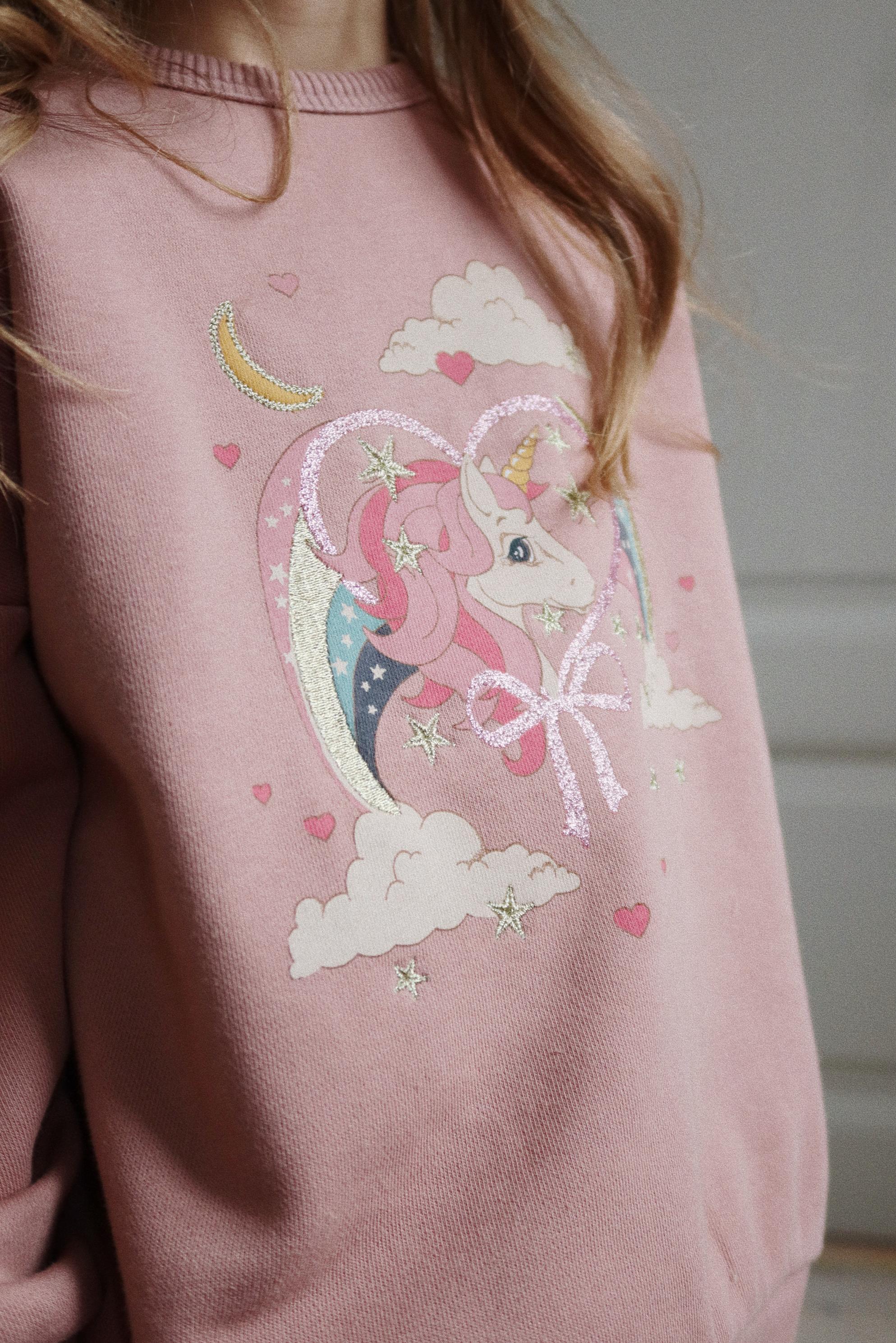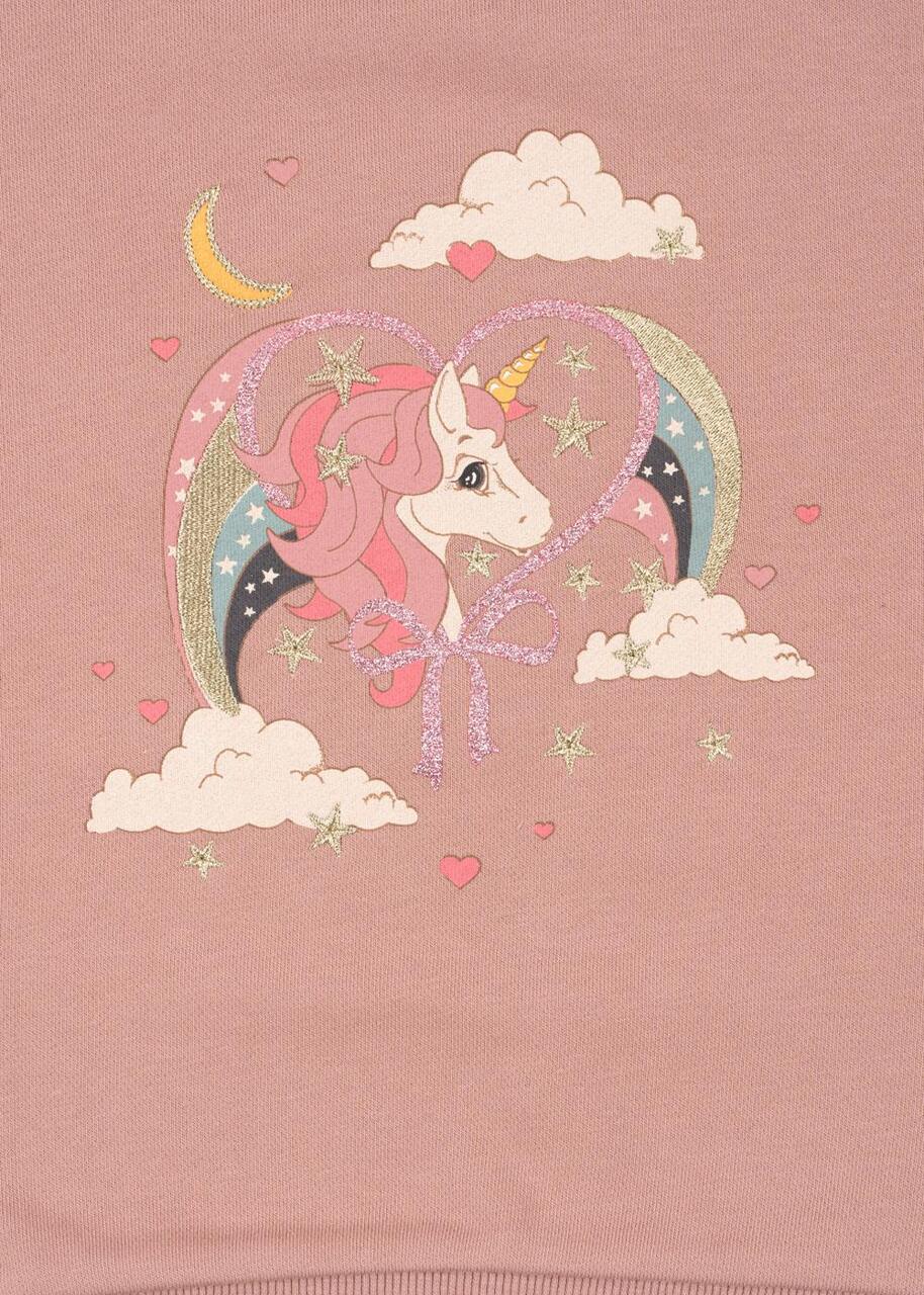 Miękka bluza z z ozdobnym brokatowym nadrukiem.. Wykonana z bawełny organicznej z domieszką stretchu. Posiada zamek błyskawiczny z przodu i miękki kaptur. Wykonana w 90% z bawełny organicznej i w 10% z poliestru. Ten produkt zawiera 90% bawełny z certyfikatem OCS.