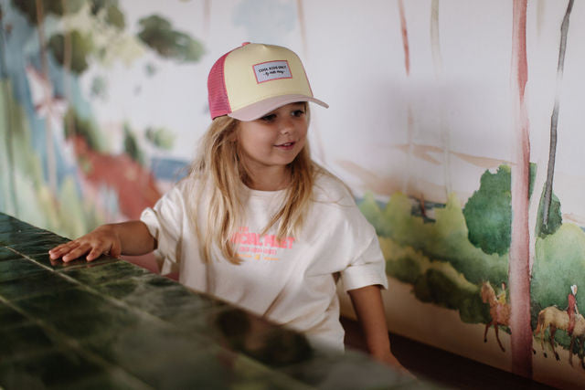 Czapka z daszkiem dla dzieci i niemowląt, model unisex. Tył z możliwością regulacji. Produkt z najnowszej kolekcji francuskiej marki Hello Hossy.