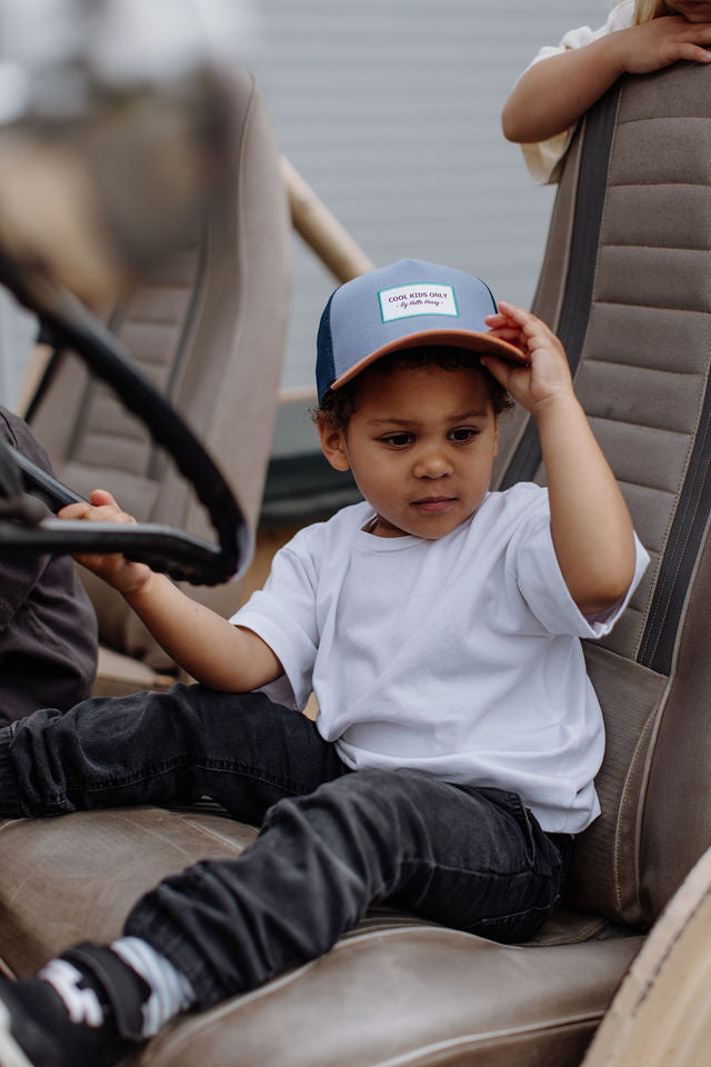 Czapka z daszkiem dla dzieci i niemowląt, model unisex. Tył z możliwością regulacji. Produkt z najnowszej kolekcji francuskiej marki Hello Hossy.