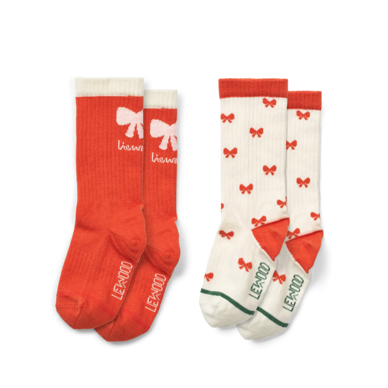 Zestaw 2 wysokiej jakości par skarpetek duńskiej marki Liewood. Elastyczne, nie uciskają, zapewniając dziecku maksymalny komfort noszenia. Prążkowany wzór i dół wspierający kostki. Sportowy i charakterystyczny wygląd.