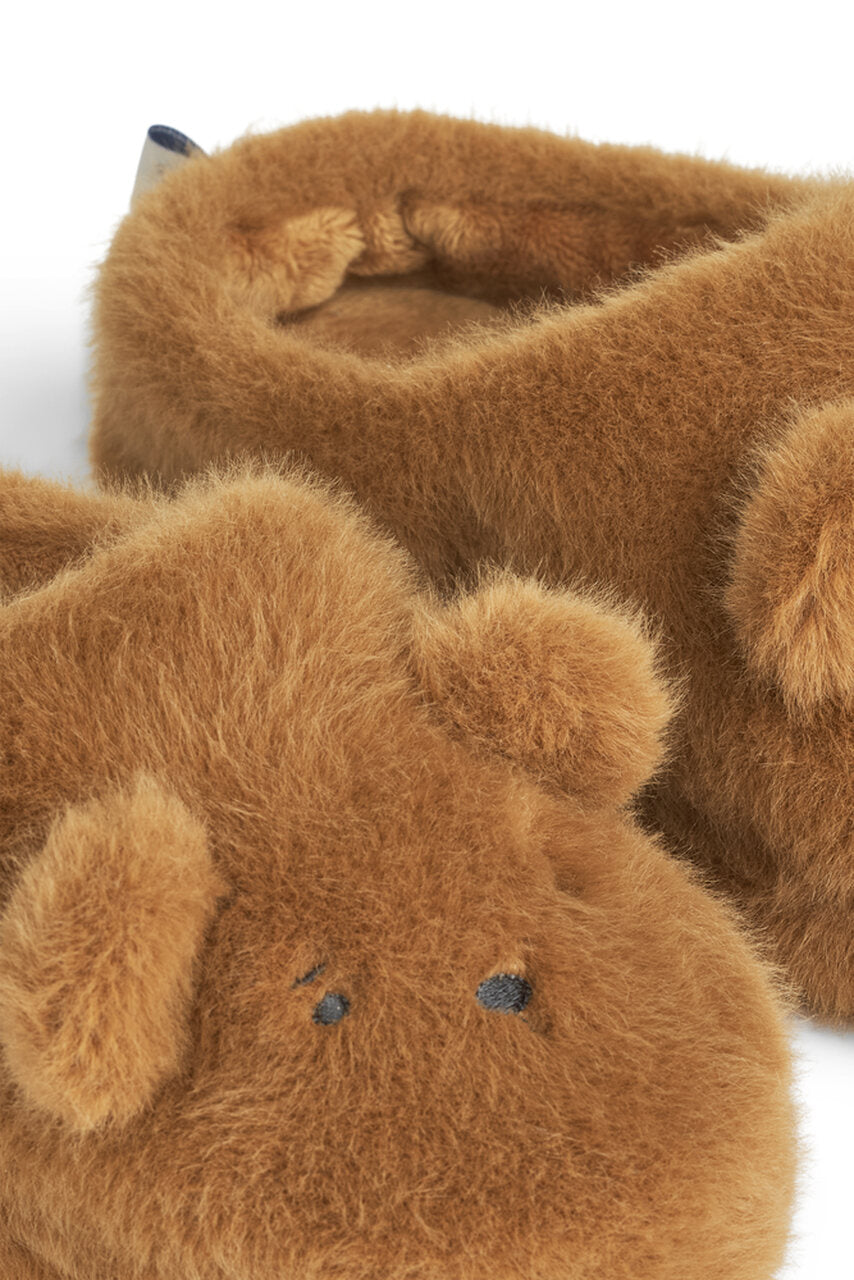 Słodkie i miękkie, pluszowe kapcie niedźwiadki są wykonane z poliestru pochodzącego z recyklingu i zaprojektowane z myślą o chłodniejszych dniach.