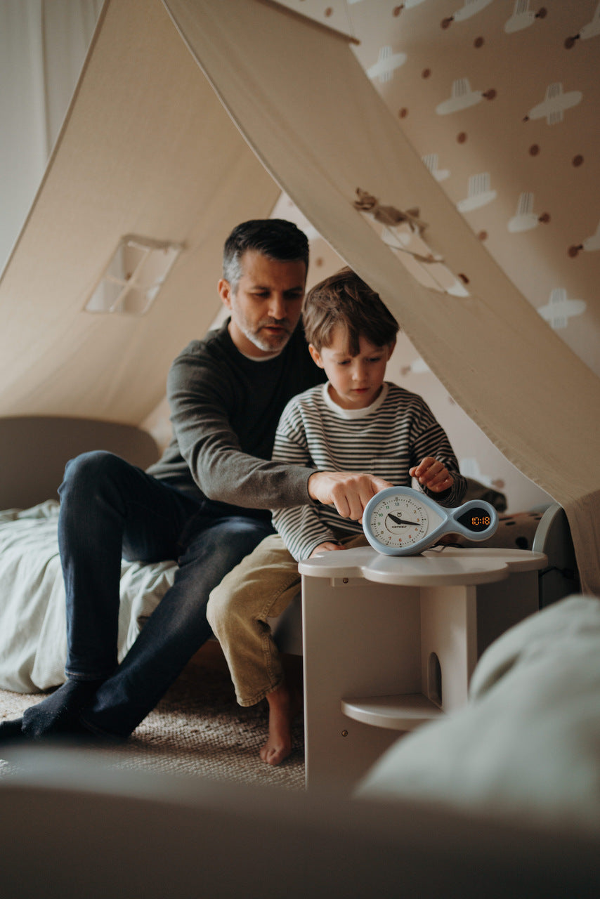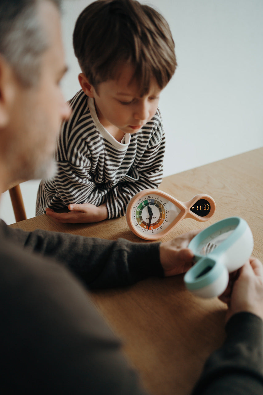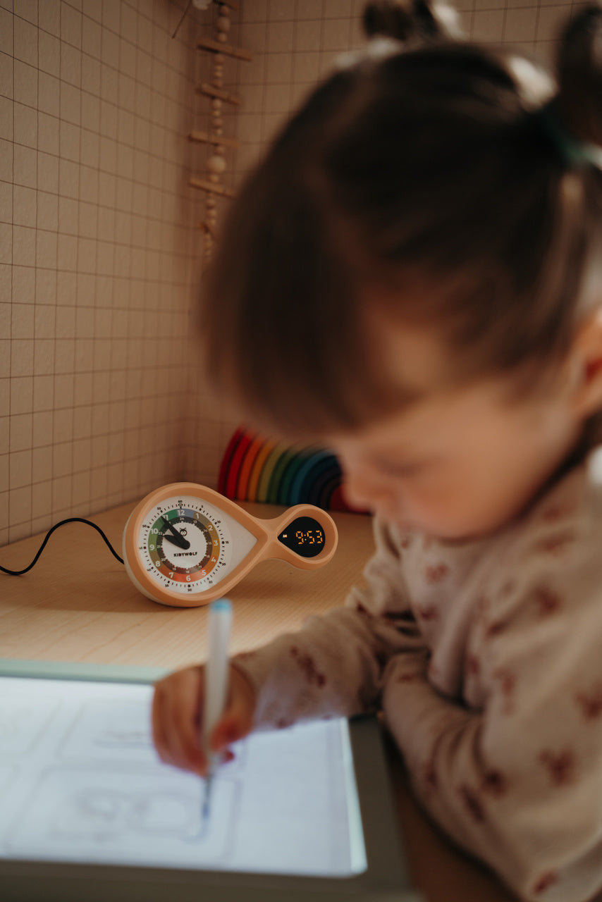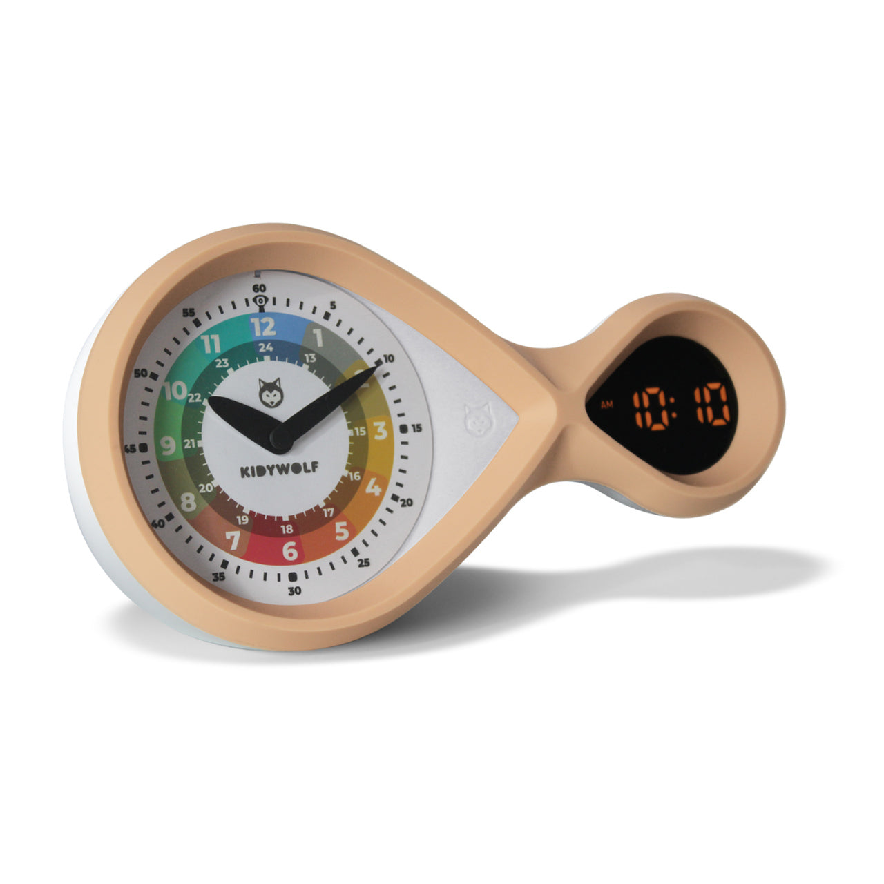 Twoje dziecko będzie więc mogło rozwijać się z zegarem, który pozwoli mu stopniowo nauczyć się odczytywać czas za pomocą kolorów, cyfr i, w miarę rozwoju, za pomocą wyświetlacza cyfrowego.