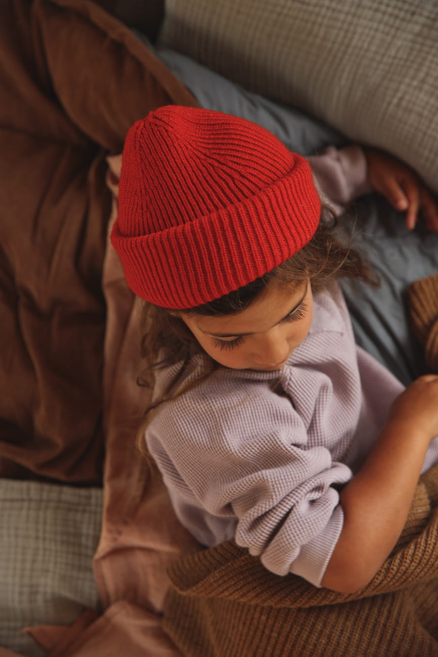 KIDS CZAPKA BEANIE FONZIE MERINO RED HVID