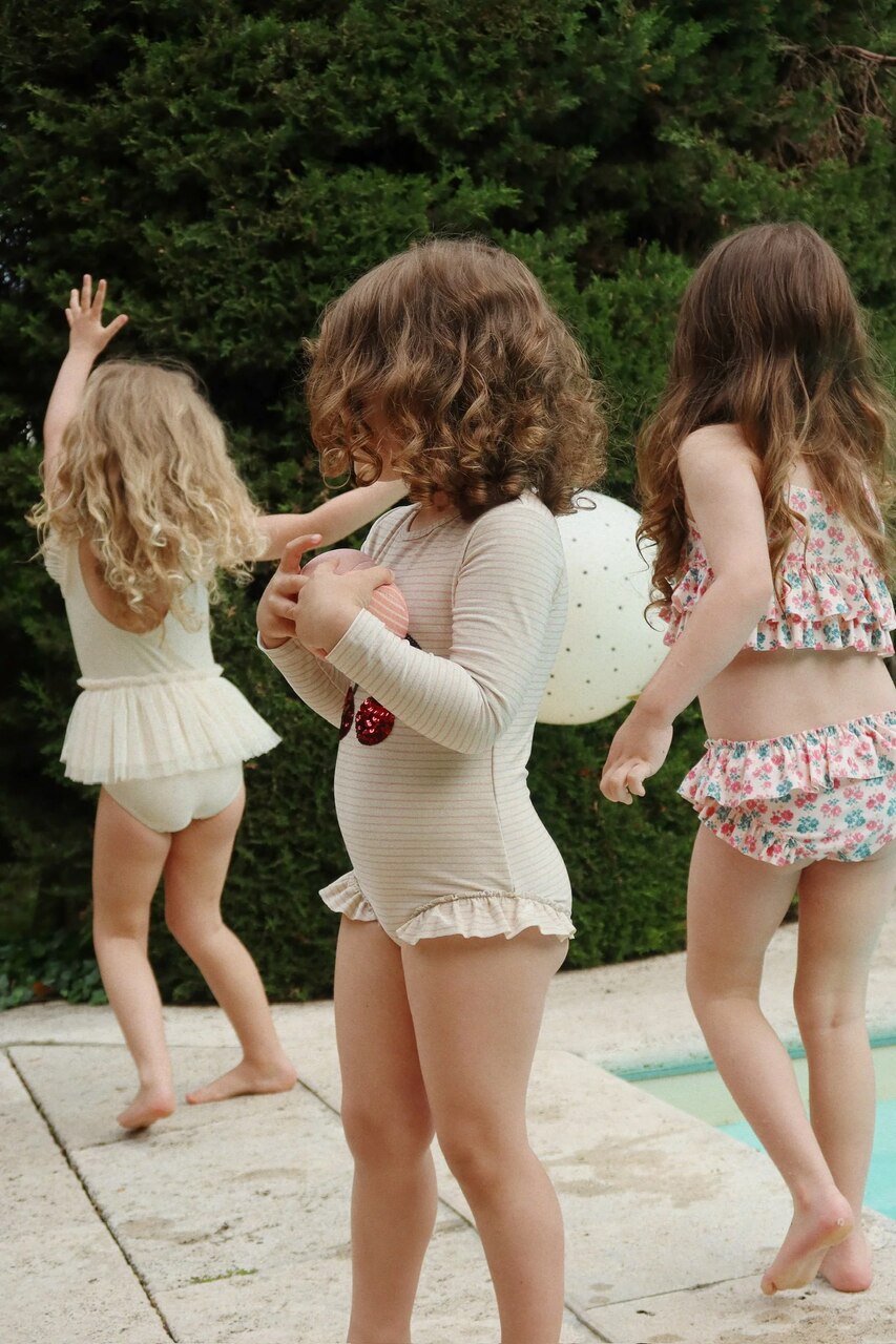 Kostium kąpielowy Jade Rose Stripe od marki Konges Slojd to jednoczęściowy strój zaprojektowany z myślą o aktywnej zabawie w wodzie i spokojnym odpoczynku na plaży. Wykonany z elastycznego materiału o wysokiej jakości, kostium zapewnia wygodę noszenia oraz dopasowanie do ciała, ułatwiając swobodne ruchy podczas pływania i zabaw wodnych.