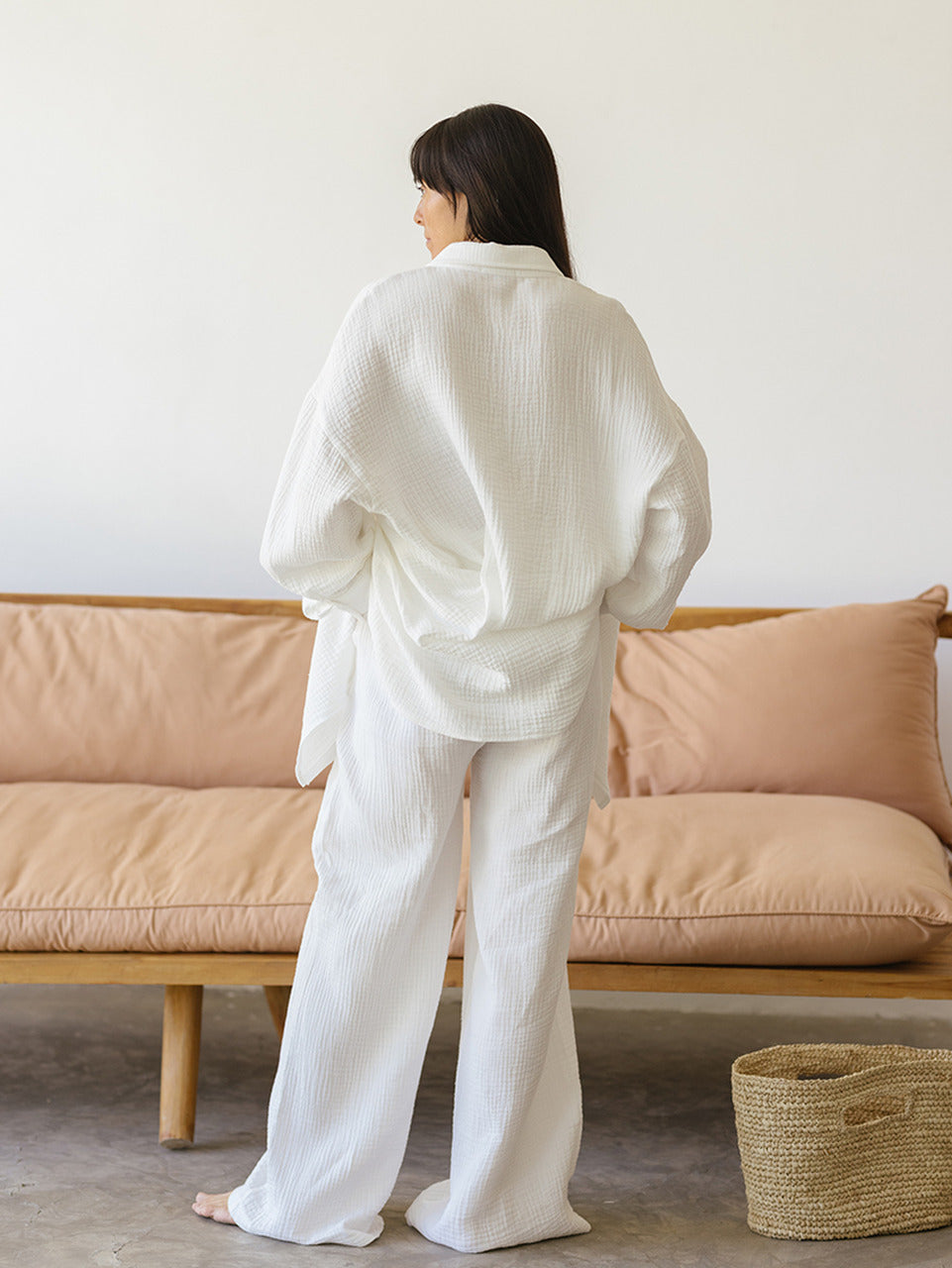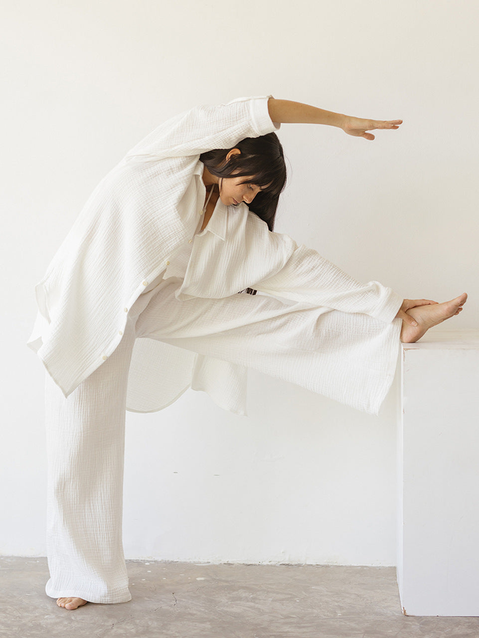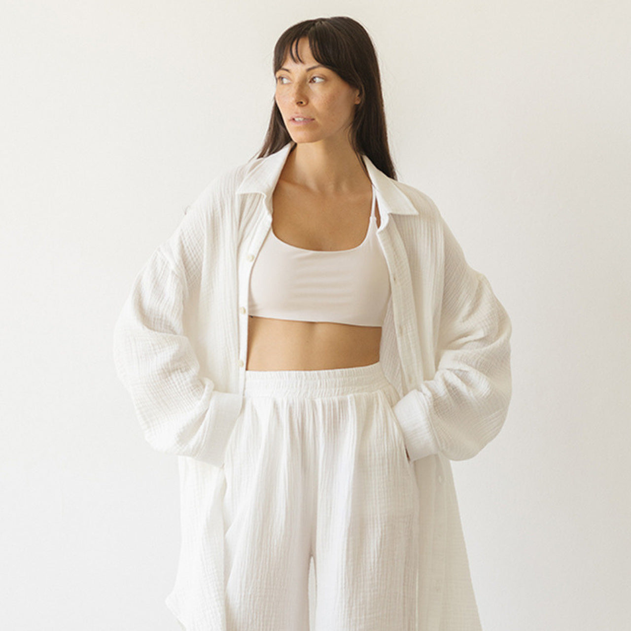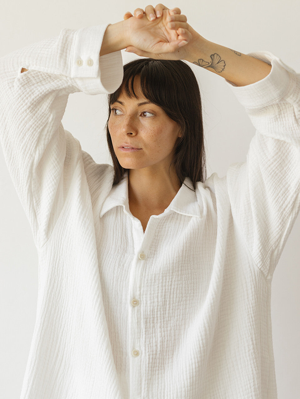Wasza ulubiona koszula Rest wraca w nowej, pastelowej odsłonie. Mięta, krem, brzoskwinia – te kolory idealnie współgrają ze słońcem, rozgrzanym piaskiem czy błękitem nieba (i Twoim ulubionym lodowym deserem). Uszyta z jeszcze delikatniejszej organicznej bawełny, miękko i swobodnie układa się na ciele.