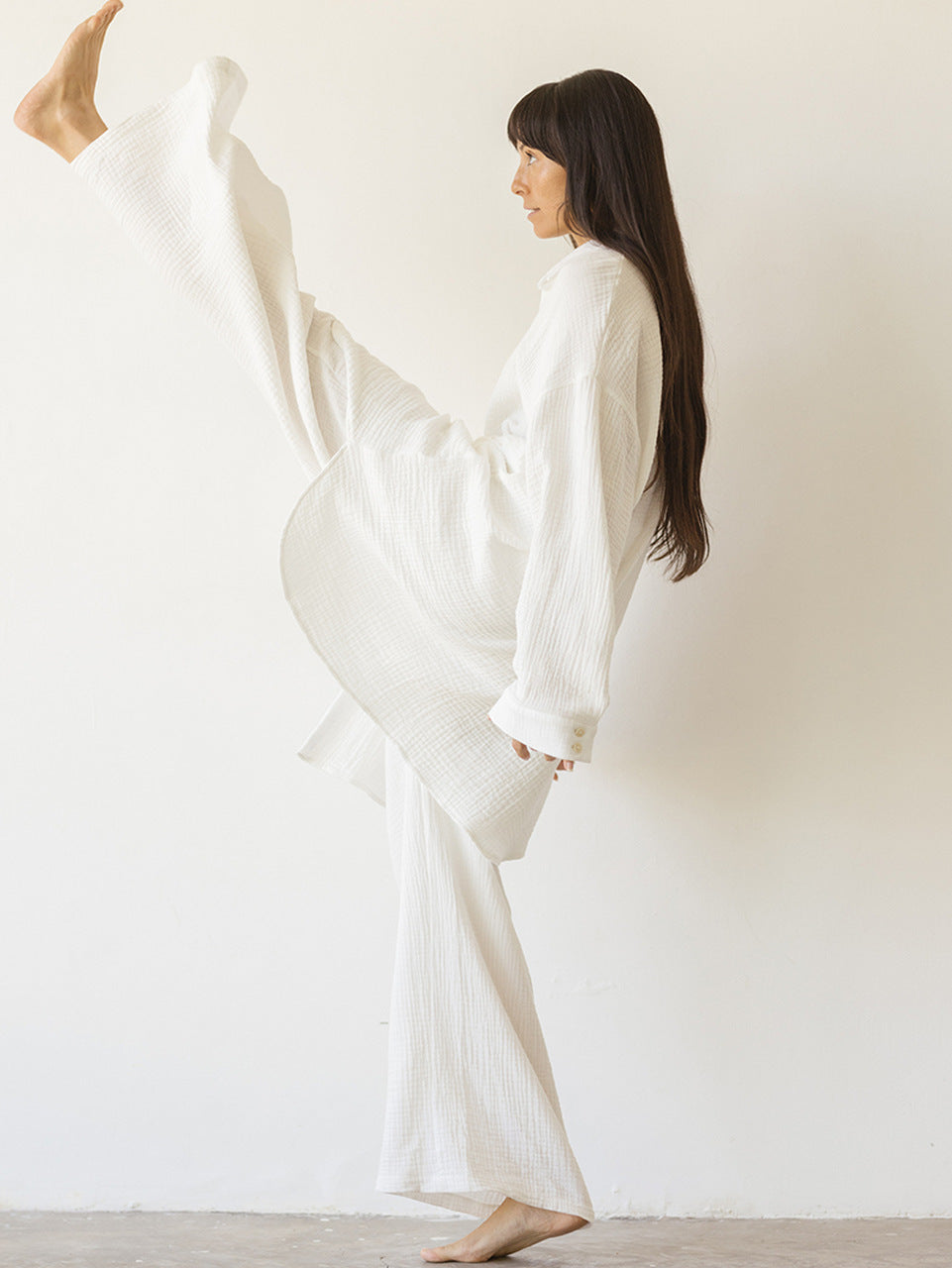 Długa i luźna zapewnia pełną wygodę i chłód. W połączeniu z szerokimi spodniami tworzy wymarzony duet na ciepłe wiosenne i letnie dni.