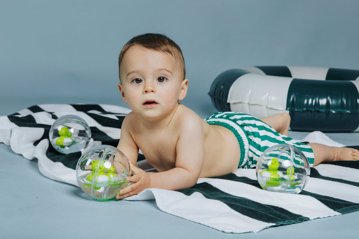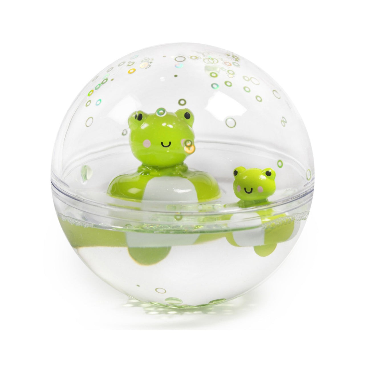 Radosna żabka i jej malutki towarzysz zachęcają do zabawy i skoków wyobraźni. Obserwując, jak para żabek porusza się w kuli, dziecko przenosi się do świata pełnego zielonych stawów i wesołego rechotu. To zabawka, która sprawi, że maluch pokocha wspólne kąpiele i eksperymenty z ruchem.