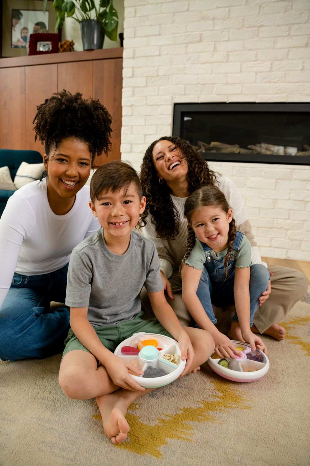 Duży, innowacyjny pojemnik na przekąski dla dzieci od GoBe Kids. Snack Spinner Slide umożliwia dziecku wybór spośród czterech różnych przekąsek, dzięki prostemu naciśnięciu przycisku. Dostęp do konkretnej przegródki uzyskujemy poprzez przesunięcie małej klapki. Dzięki Snack Spinner jedzenie warzyw, owoców czy słonych przekąsek stanie się dla dziecka przyjemnością i zabawą.
