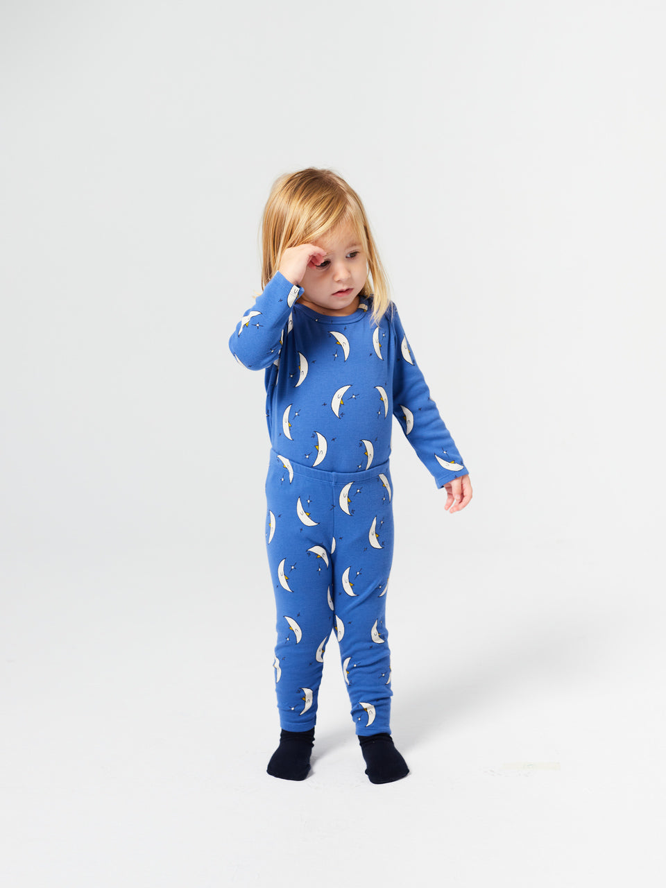Miękkie, niebieskie legginsy z motywem księzyców umieszczonym na nogawkach. Wygodne, gumka w pasie nie uwiera. Model unisex. Wyprodukowane w Hiszpanii. Ten produkt pochodzi z kolekcji dziecięcej AW24.