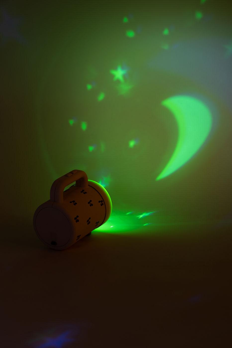 Magiczna latarka ze światłami zmieniającymi kolor. Posiada oddzielną pokrywę z wyciętymi kształtami: przymocuj ją do przedniej części latarki i wyświetl na ścianie - ekscytujące opowieści będą się rozwijać!