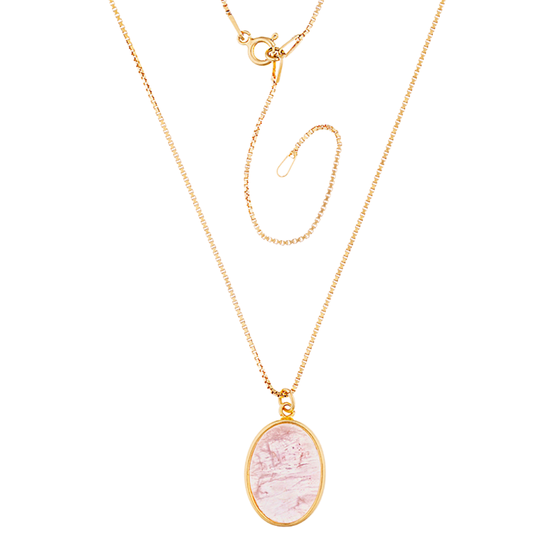 Centralnym elementem naszyjnika jest kwarc różowy – kamień znany jako symbol miłości, harmonii i spokoju. Jego delikatny, pudrowy odcień nadaje biżuterii lekkości i romantycznego charakteru, a jednocześnie sprawia, że naszyjnik staje się osobistym talizmanem wspierającym pozytywne emocje.