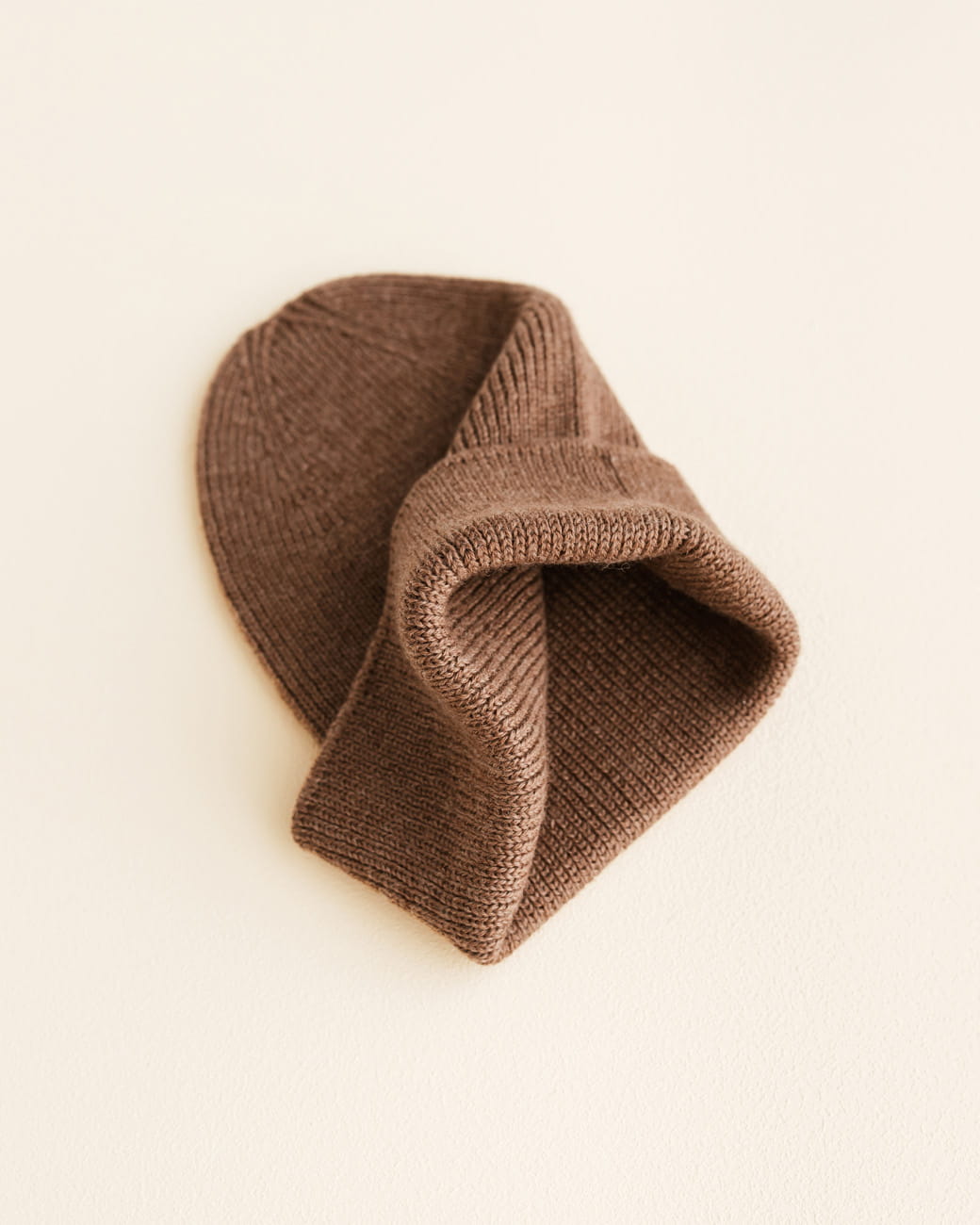 NEWBORN CZAPKA BEANIE FONZIE MERINO MOCHA HVID