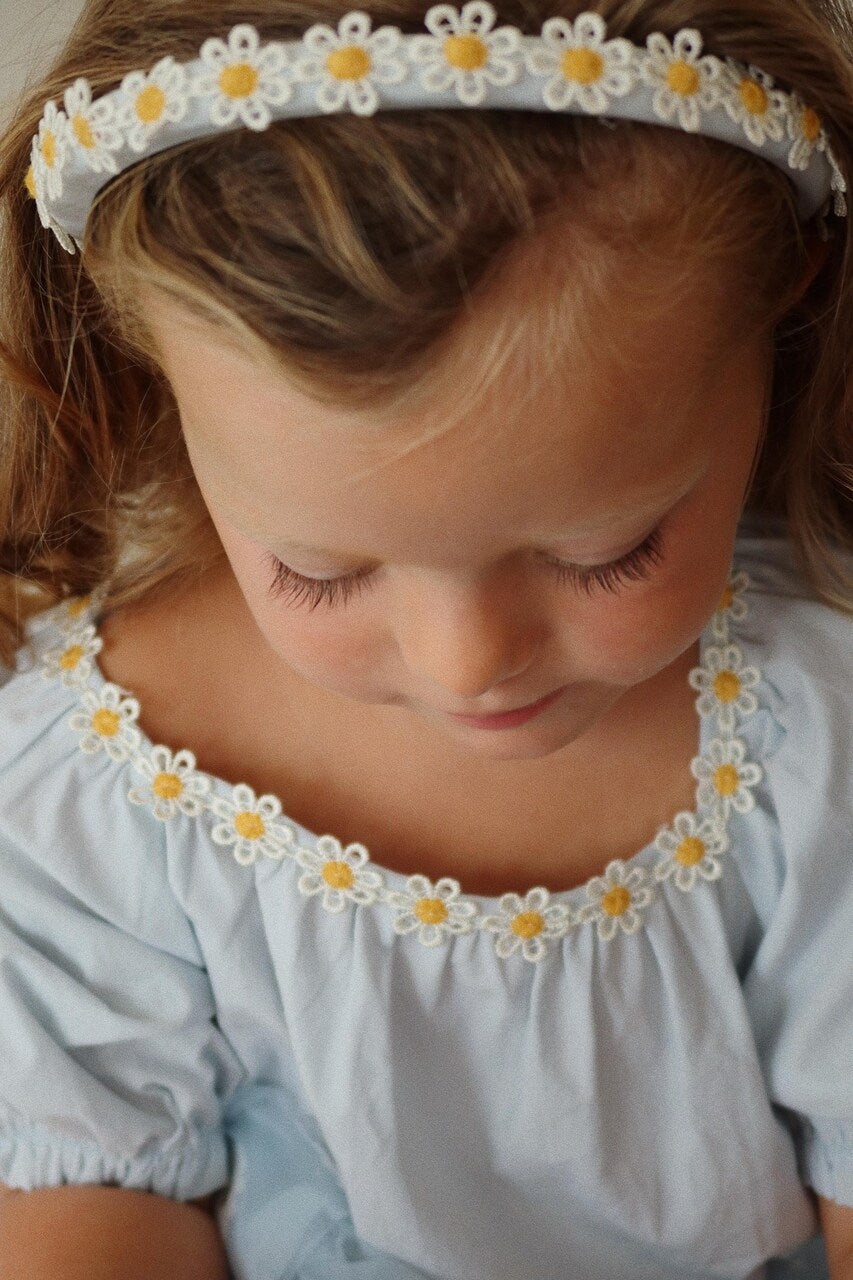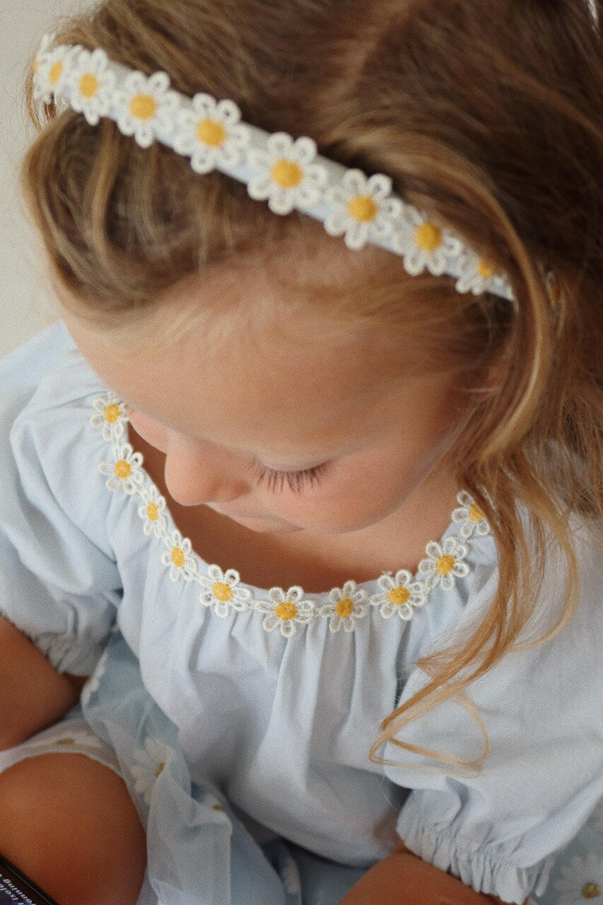 Urocza, bawełniana opaska do włosów dla dziewczynki z motywem kwiatowym. Sprawdzi się idealnie podczas świątecznych uroczystości zapewniając poczucie komfortu i wygody. Idealny pomysł na prezent.