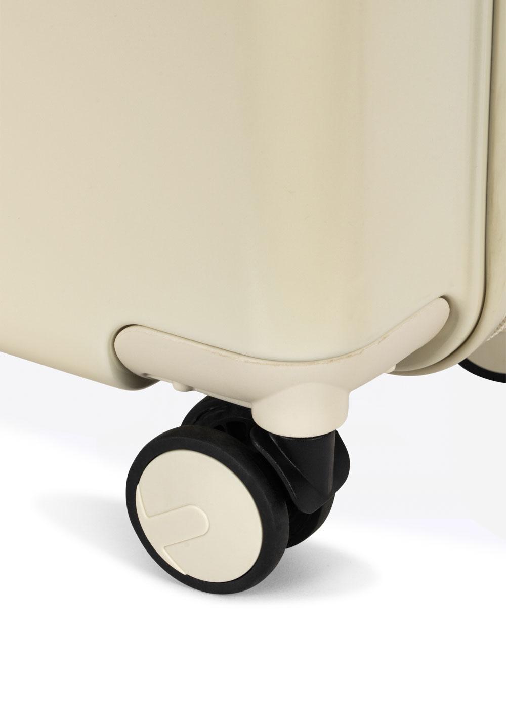 Materiał: etui: PC, wózek: aluminium, uchwyt: PP, kółko: PP, podszewka: poliester