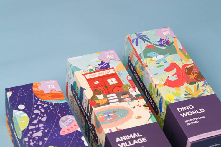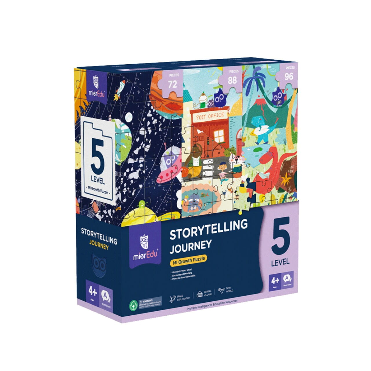 Puzzle progresywne - Opowiadaj historie - Poziom 5 (4+) od mierEdu. Ten zestaw puzzli progresywnych został stworzony do wspaniałej zabawy. Wewnątrz pudełka kryją się aż 3 układanki - każda o innym poziomie trudności, dzięki czemu puzzle mogą rosnąć razem z dzieckiem. Urocze ilustracje i interesujące szczegóły zachęcają dzieci do aktywnej obserwacji i snucia opowiadań o przygodach w prehistorycznym świecie lub o wyprawie w kosmos. Każda układanka zapakowana jest w osobne pudełko. Opakowanie jest przyjazne dla środowiska i zaprojektowane w sposób, który ułatwi jego przechowywanie. Ten zestaw to doskonała propozycja dla rozwoju dziecięcej kreatywności, logicznego myślenia oraz motoryki małej. Poznaj pozostałe zestawy puzzli od mieEdu.