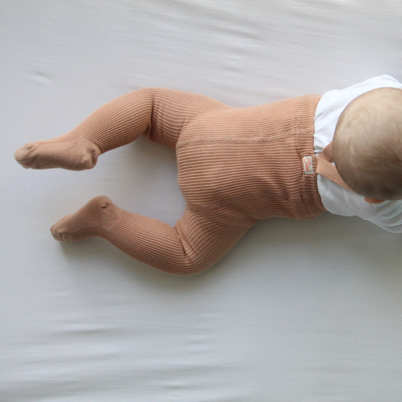 RAJSTOPKI DZIECIĘCE Z SZELKAMI ZE 100% BAWEŁNY JASNOBRĄZOWE SILLY SILAS