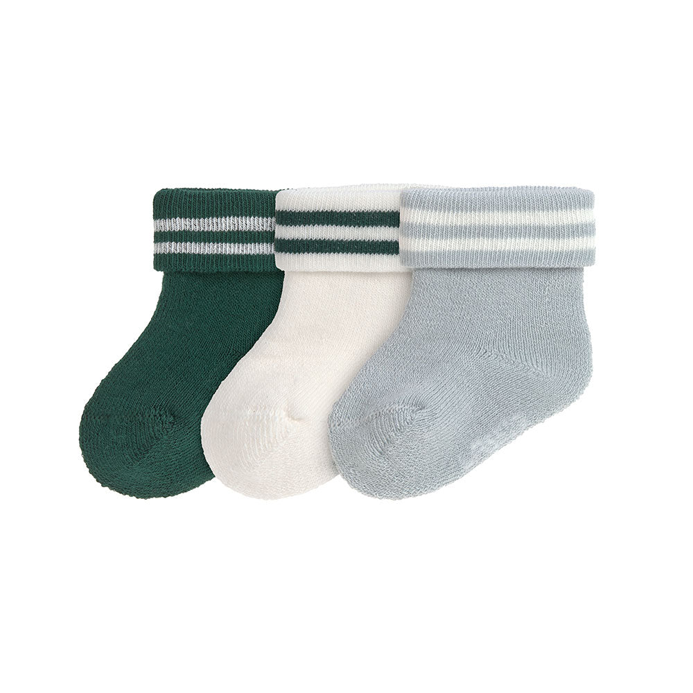 Dziecięce skarpetki frotte z certyfikatem GOTS z paskami w kolorze zielonym i niebieskim oraz wysoką zawartością bawełny (organicznej) sprawiają, że każdy strój przyciąga wzrok. Oddychające. Łatwe do zakładania i zdejmowania. Płaski szew na palcach.