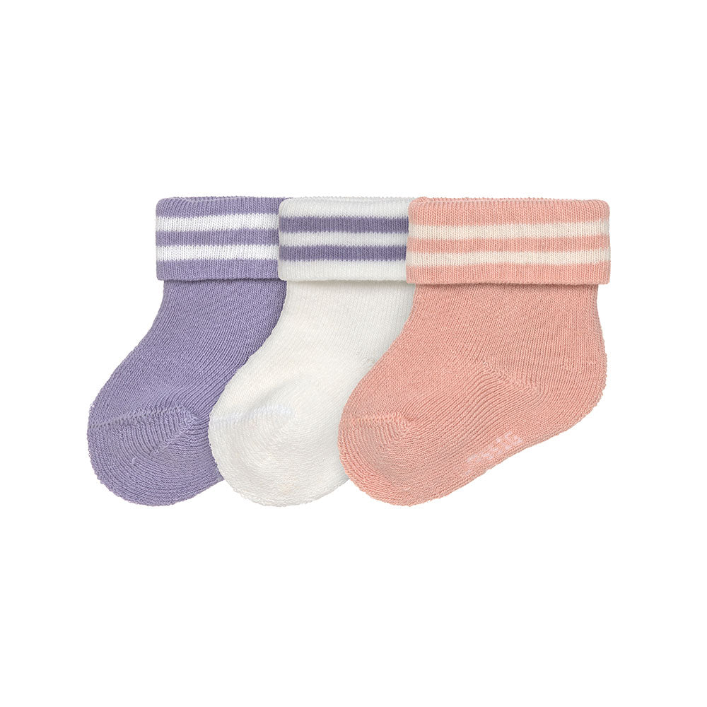 Dziecięce skarpetki frotte z certyfikatem GOTS z paskami w kolorze liliowego różu i wysoką zawartością bawełny (organicznej) sprawią, że każdy strój będzie przyciągał wzrok. Oddychające. Łatwe do zakładania i zdejmowania. Płaski szew na palcach.