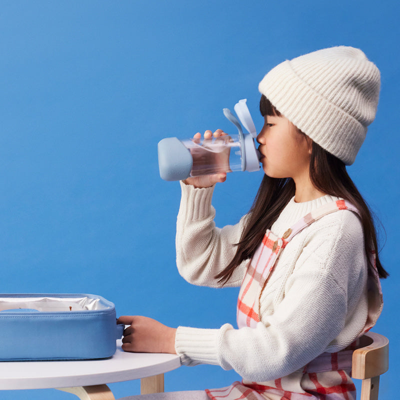 Tritanowa sportowa butelka z ustnikiem. Lekka, trwała i ergonomiczna. Bidon posiada ergonomiczny trójkątny kształt umożliwiający wygodny chwyt oburącz. Jest dużo lżejsza i trwalsza. Lepiej niż szkło i plastik znosi dziecięcą żywiołowość. Nie wpływa na smak i zapach picia. Silikonowy ustnik nie wymaga kompresji (uciskania) co ułatwia picie. Ustnik posiada zawór zapobiegający rozlewaniu. Pokrywka posiada blokadę uniemożliwiającą jej opadanie na twarz dziecka podczas picia. Bidon posiada zdejmowaną osłonę zabezpieczającą dół butelki.