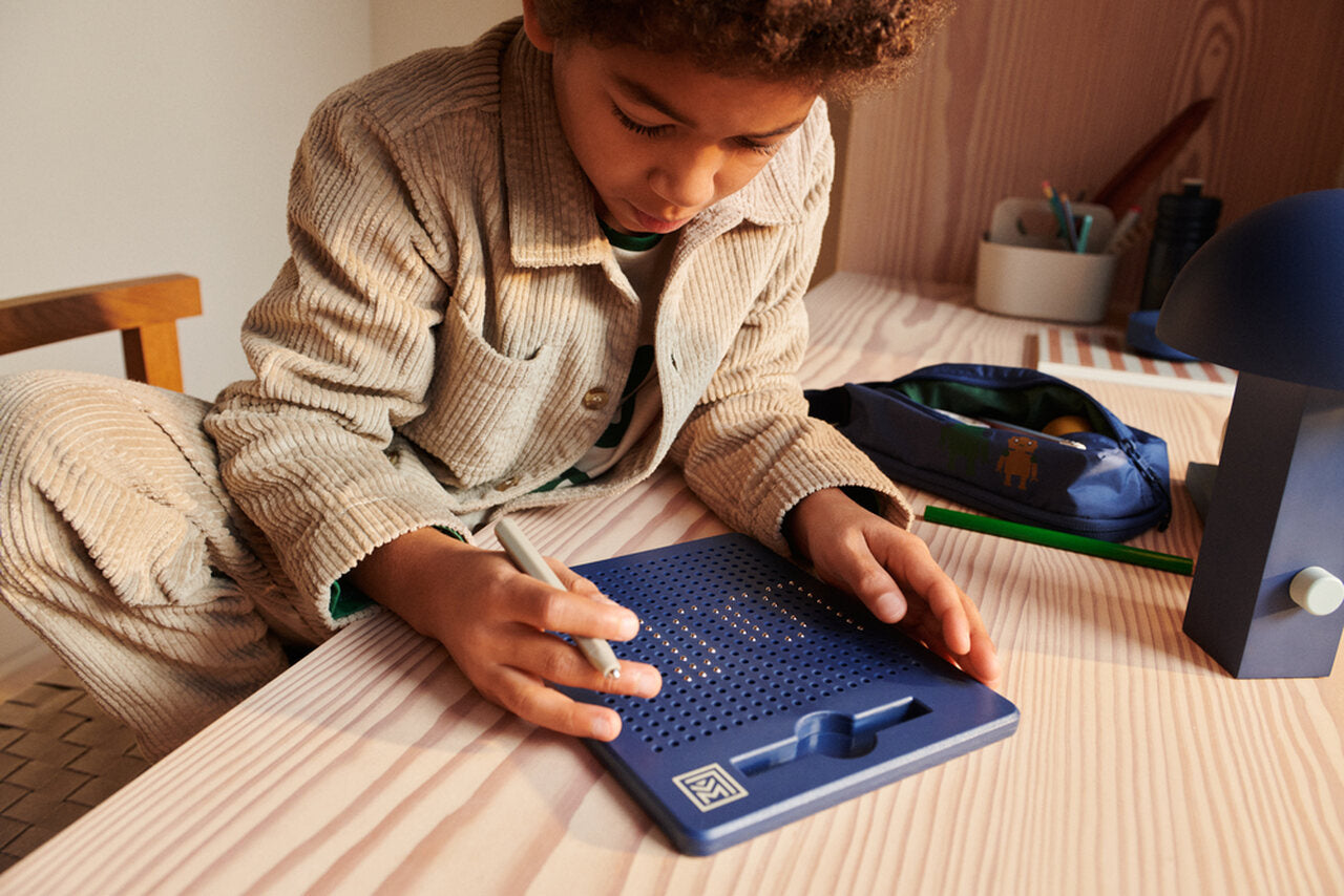 Tablica magnetyczna w mini rozmiarze dla dzieci, które lubią kreatywne rozwiązania. Dzięki małemu formatowi można zabrać ją ze sobą wszędzie! Idealnie sprawdzi się w podróży samolotem, samochodem czy pociągiem, w restauracji podczas oczekiwania na jedzenie. Wszystko co muszą zrobić, to przeciągnąć ołówkiem po tablicy tak, aby małe magnetyczne kuleczki uniosły się i uformowały rysunek.
