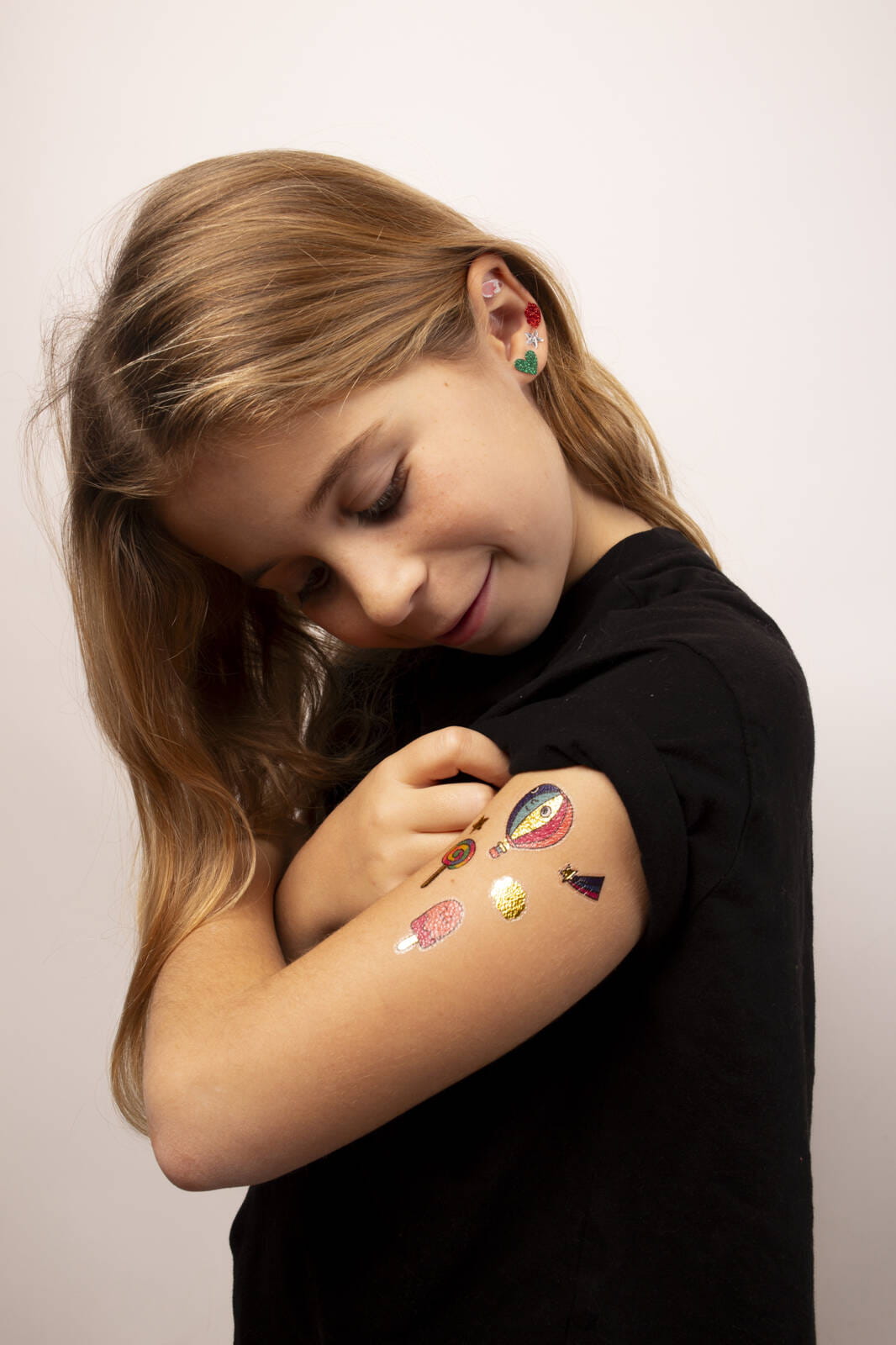 W tym uroczym opakowaniu znajdziecie aż 50 fluorescencyjnych, złotych i kolorowych zmywalnych tatuaży, które możecie przyklejać na całym ciele przez cały rok. Tatuaże są łatwe w użyciu, trwałe i przetestowane dermatologicznie.
