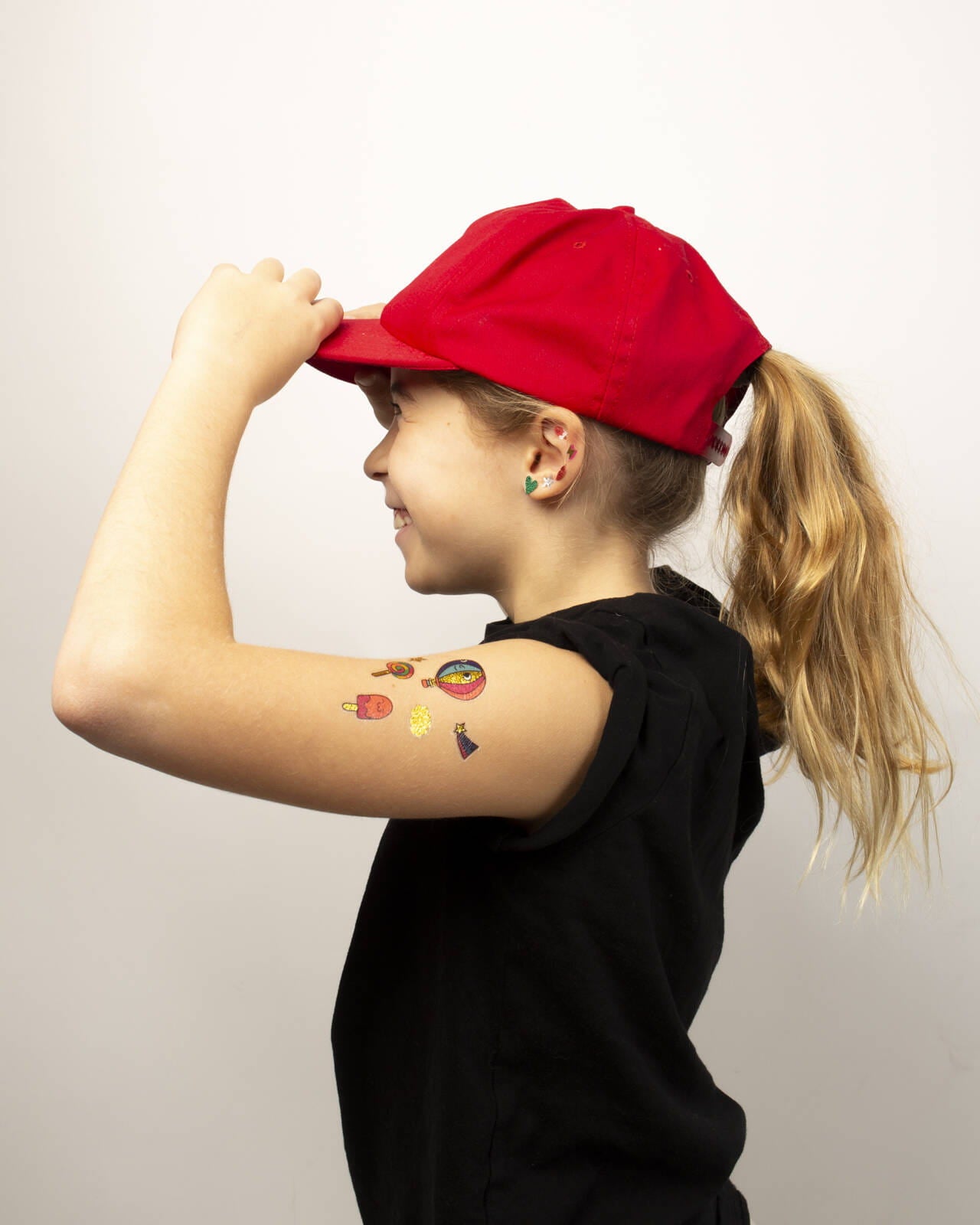 W tym uroczym opakowaniu znajdziecie aż 50 fluorescencyjnych, złotych i kolorowych zmywalnych tatuaży, które możecie przyklejać na całym ciele przez cały rok. Tatuaże są łatwe w użyciu, trwałe i przetestowane dermatologicznie.
