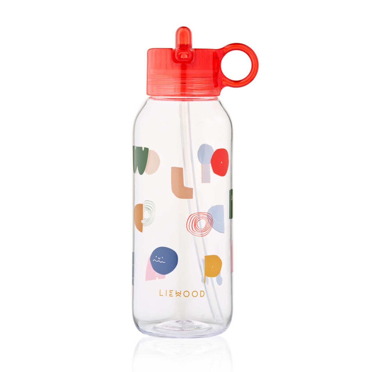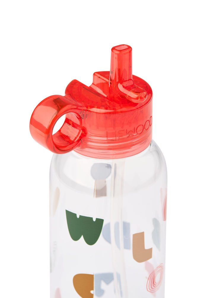 Przezroczysta butelka na wodę o pojemności 500 ml z kolorowymi nadrukami. Wykonana z bardzo wytrzymałego i nietłukącego tritanu. Wbudowana pokrywka z wyskakującą wylewką i uchwyt na pętelkę do przenoszenia w podróży. Lekki materiał sprawia, że idealnie nadaje się na dni szkolne i wycieczki. Można myć w zmywarce. Pasuje do jednego z naszych popularnych pojemników na lunch ARTHUR tritan