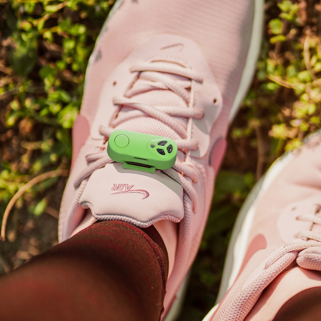 Tickless Active przytwierdza się do sznurówki - urządzenie jest stabilnie przymocowane.