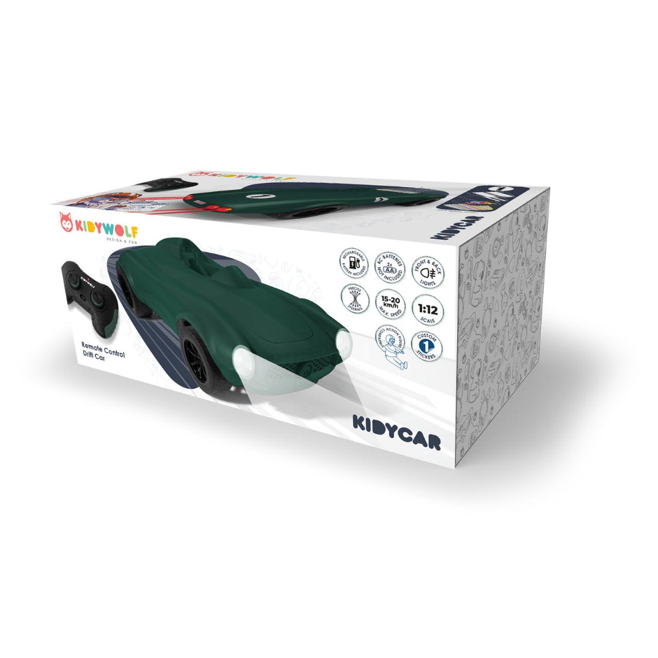 KIDYCAR, zdalnie sterowany samochód dla dzieci, które uwielbiają wyścigi i drifting, a wszystko to w eleganckim samochodzie o designie inspirowanym kultowymi pojazdami.Kolor: green