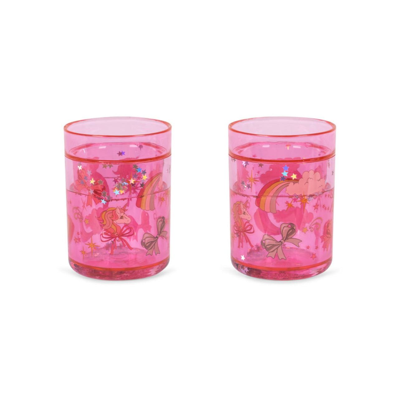 Zestaw 2 brokatowych kubeczków z motywem graficznym dinozaurów. Rozsyp trochę magii za pomocą brokatowych kubków. Wystarczy lekko potrząsnąć, a brokat zacznie delikatnie tańczyć. Kubki posiadają zaokrąglone kształty, dzięki którym spożywanie napoi stanie się o wiele prostsze (samodzielnie picie).