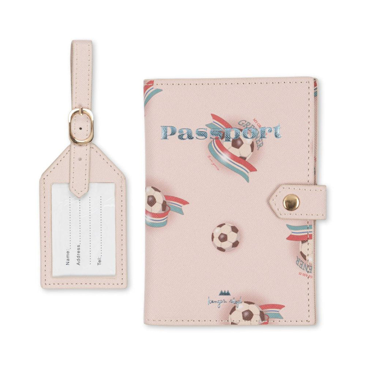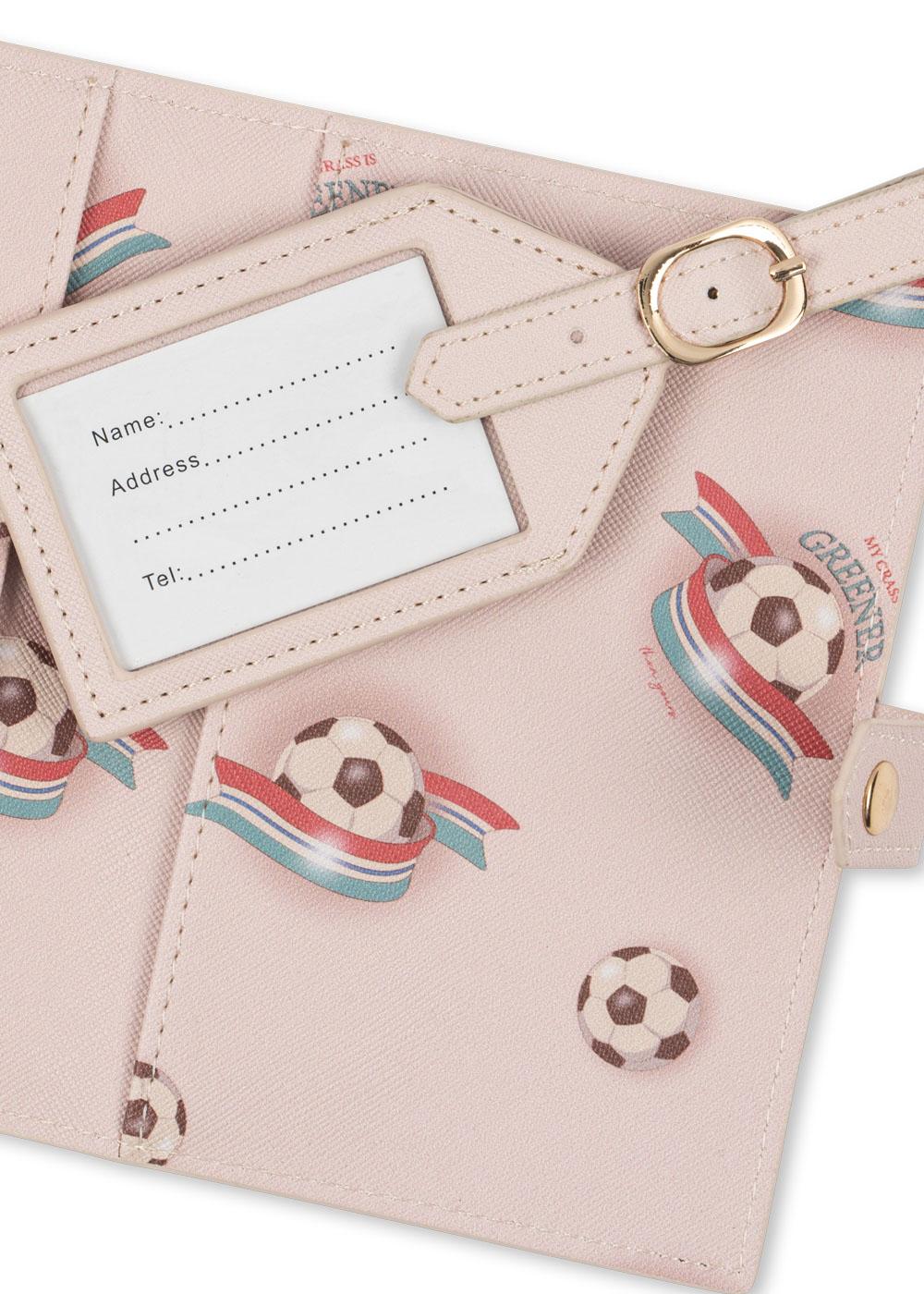Zawieszka do bagażu i etui na paszport zaprojektowane z małymi przegródkami i zamknięciem na guzik zatrzaskowy.